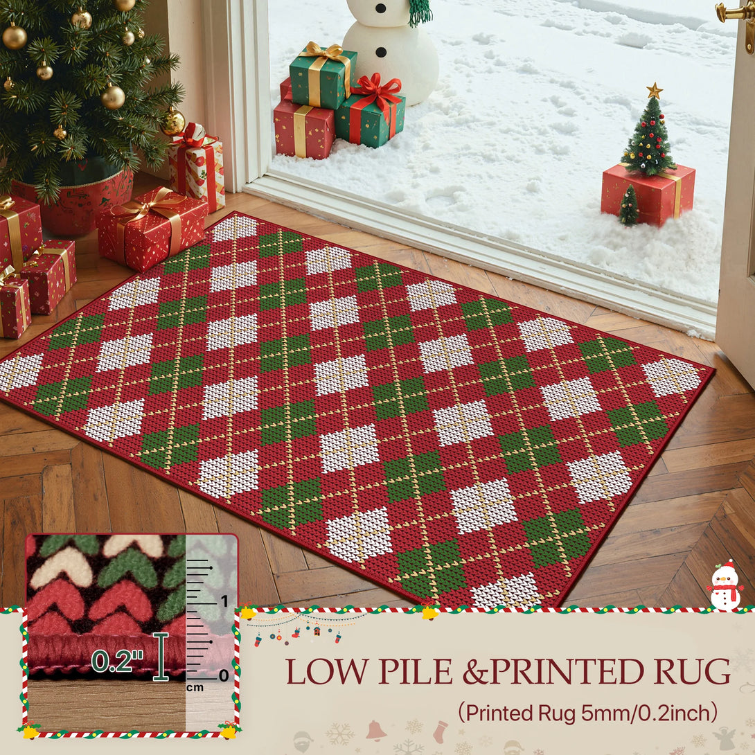 Althea Christmas Checkered Washable Belgian Velvet Rug