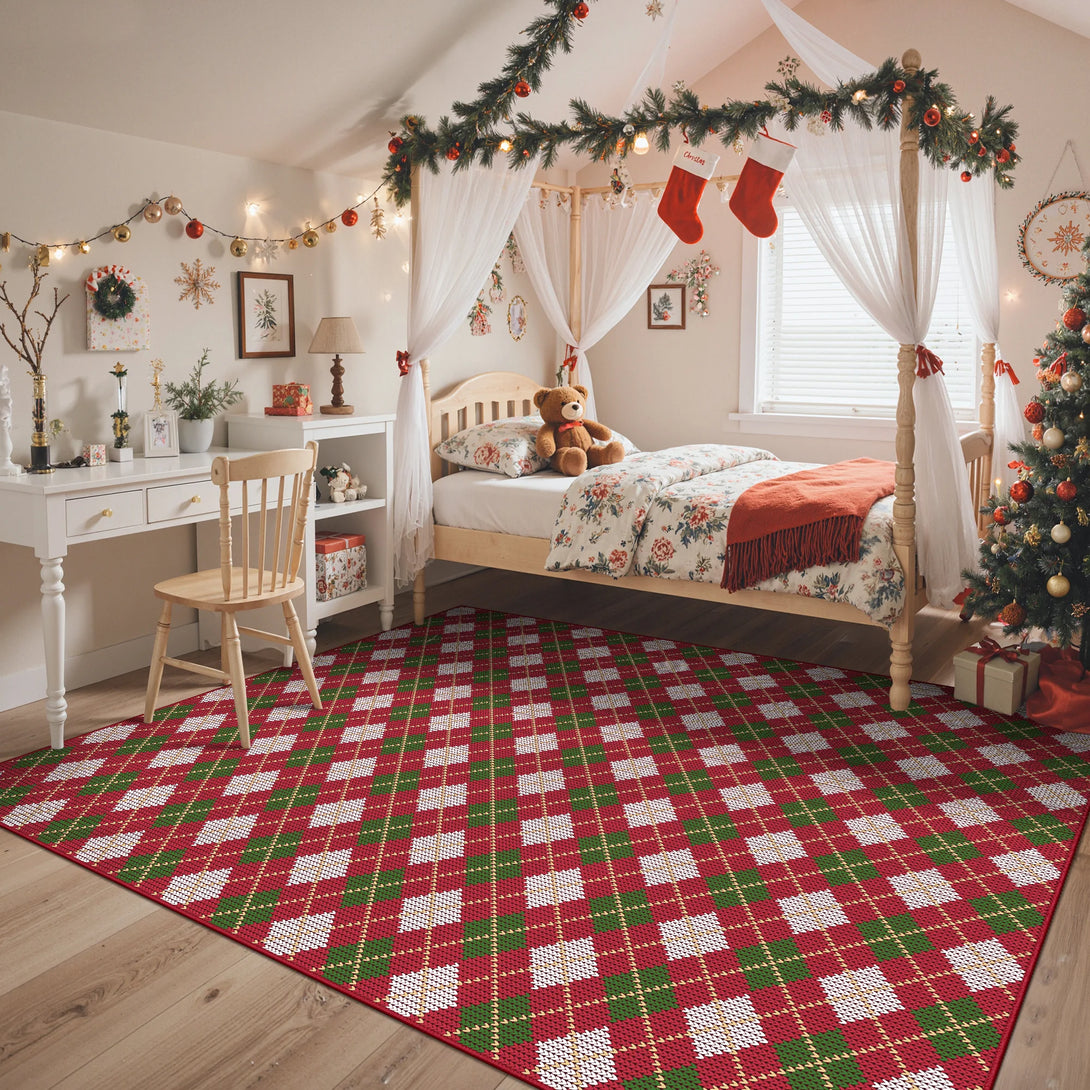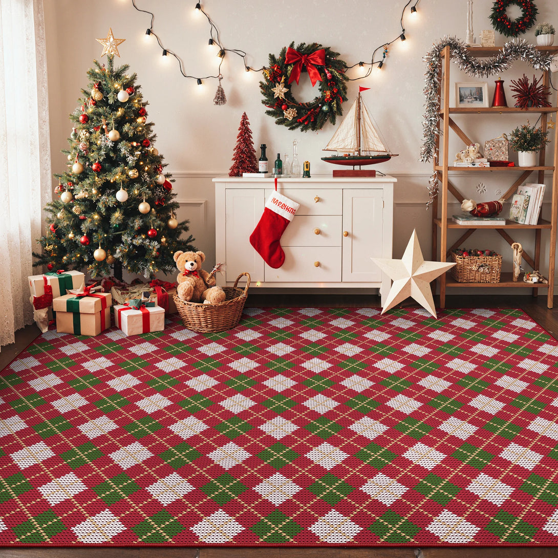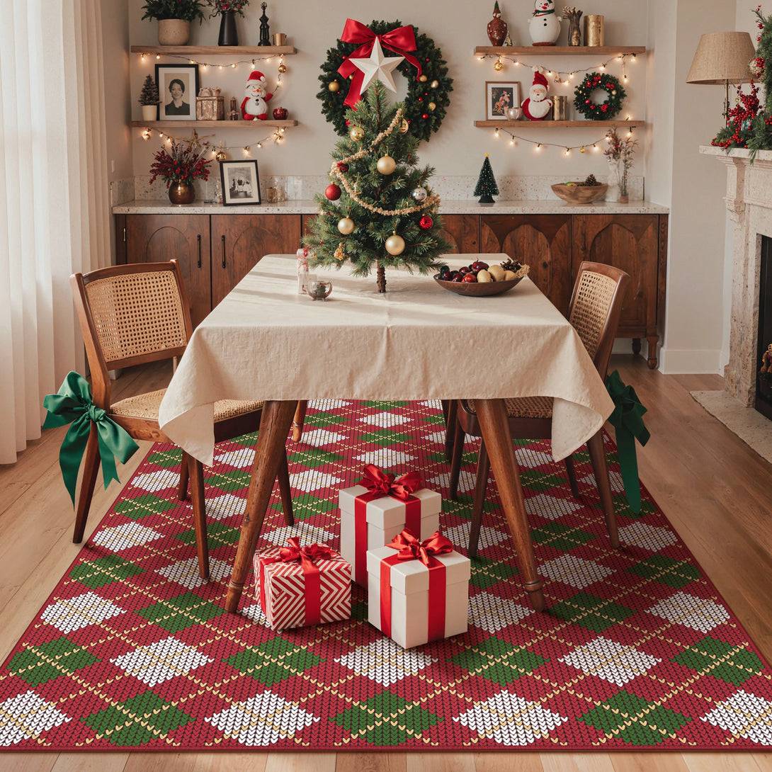 Celebrate Christmas with heartwarming comfort and timeless charm — the Xmas Checkered Rug makes every corner of your home feel merry and bright.