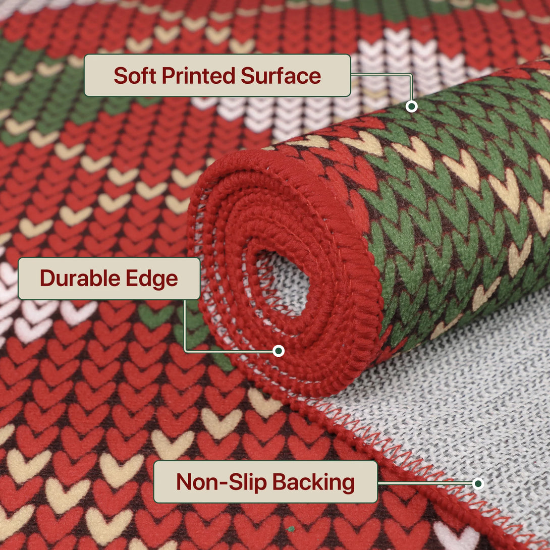 GENIMO Althea Christmas Checkered Washable Belgian Velvet Rug – Machine Washable, Pet Friendly & Spill Resistant