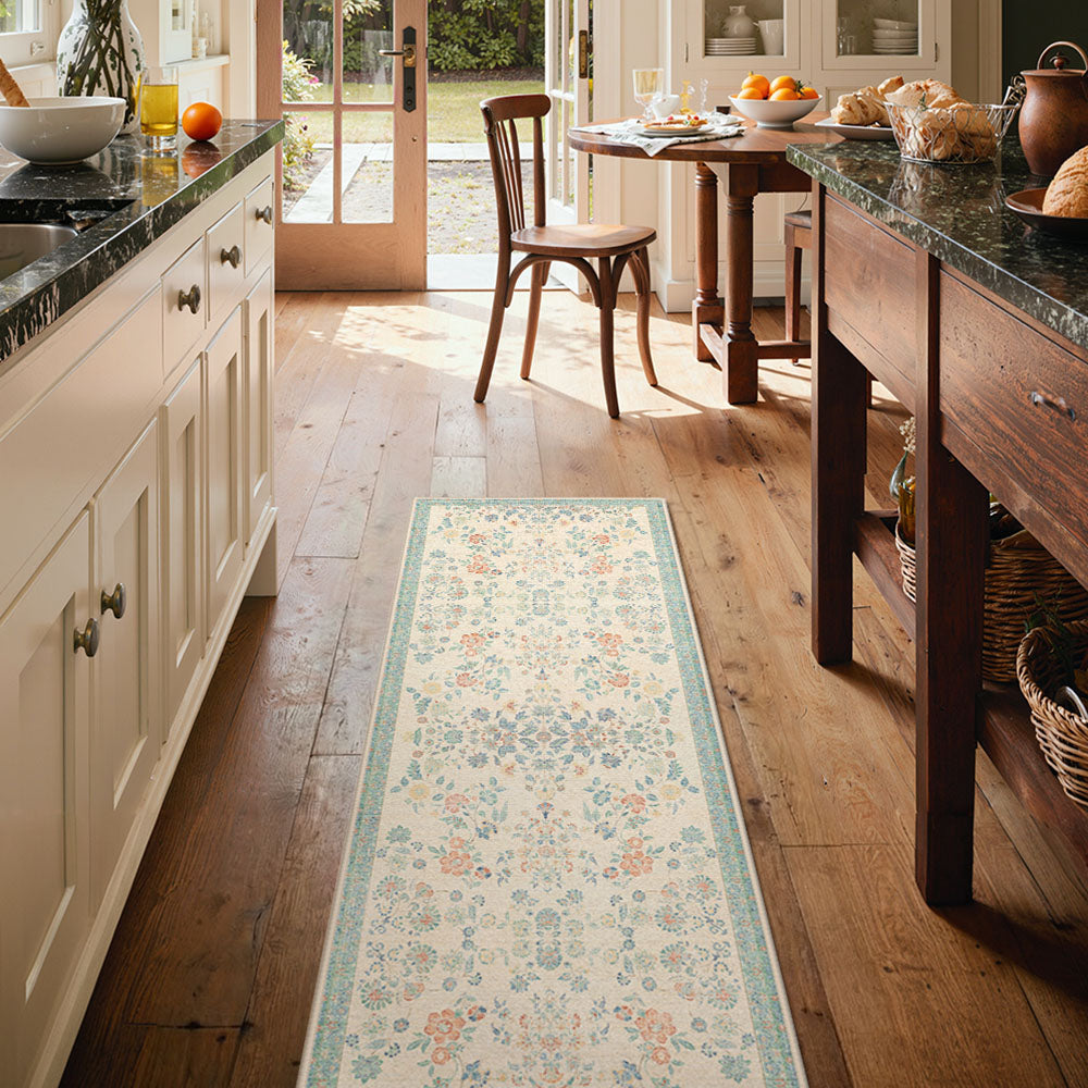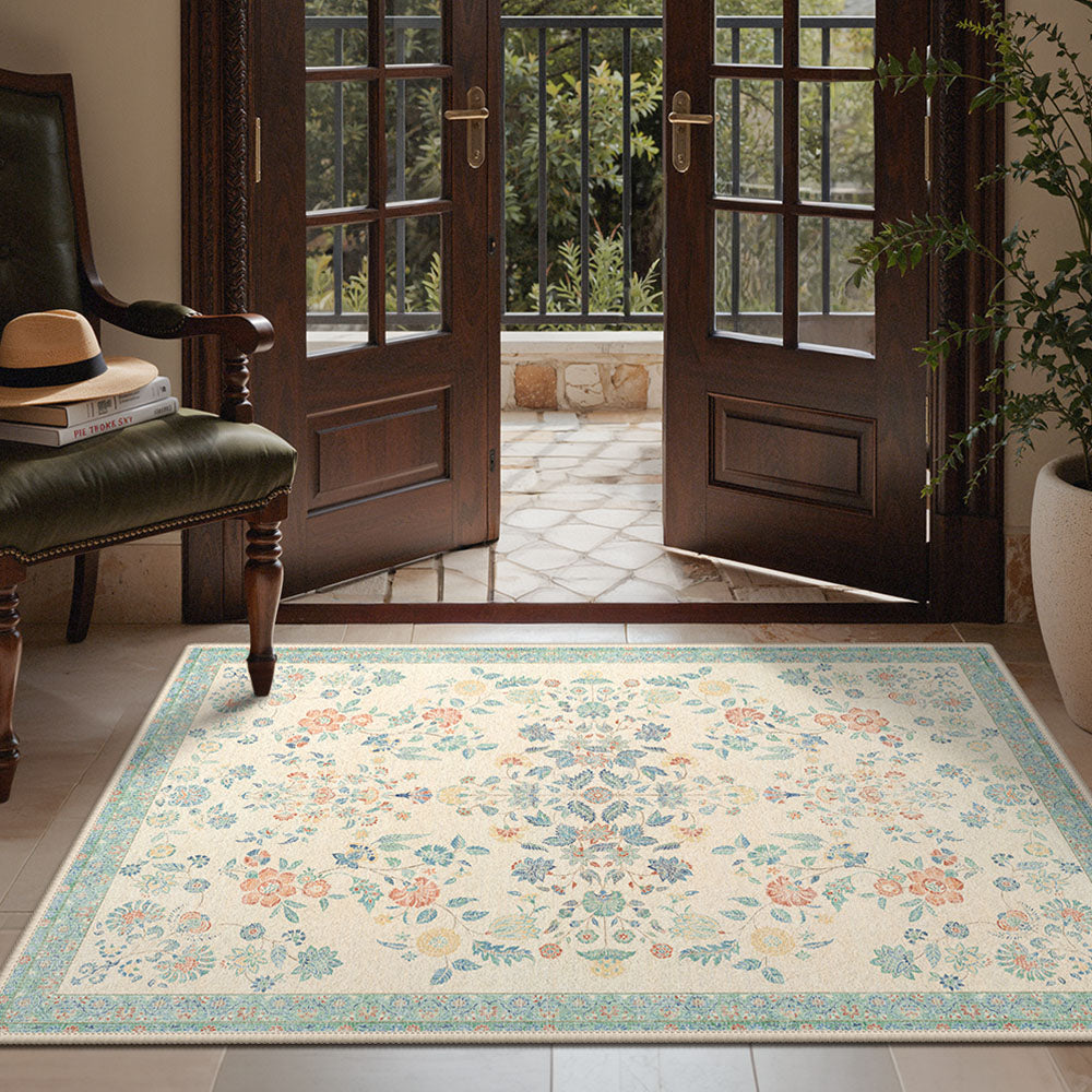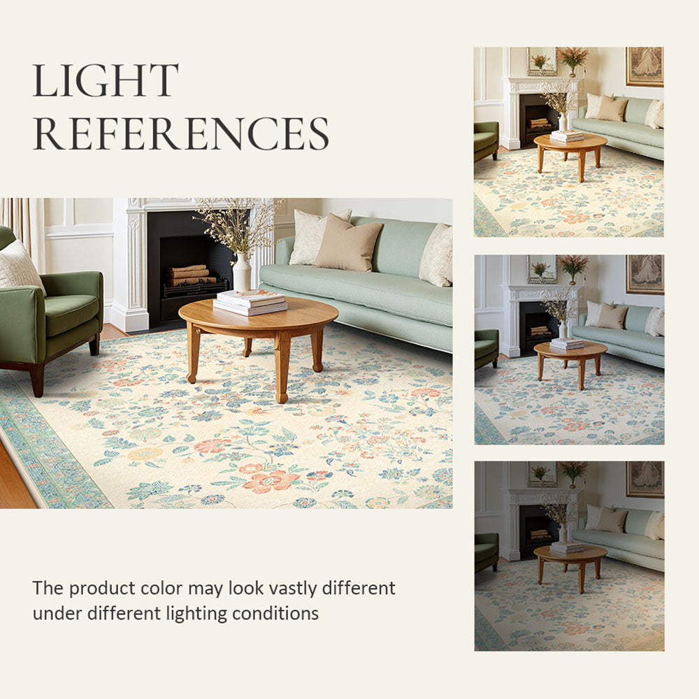 Aurell Washable Vintage Boho Floral Green Rug – Machine Washable, Pet Friendly & Spill Resistant