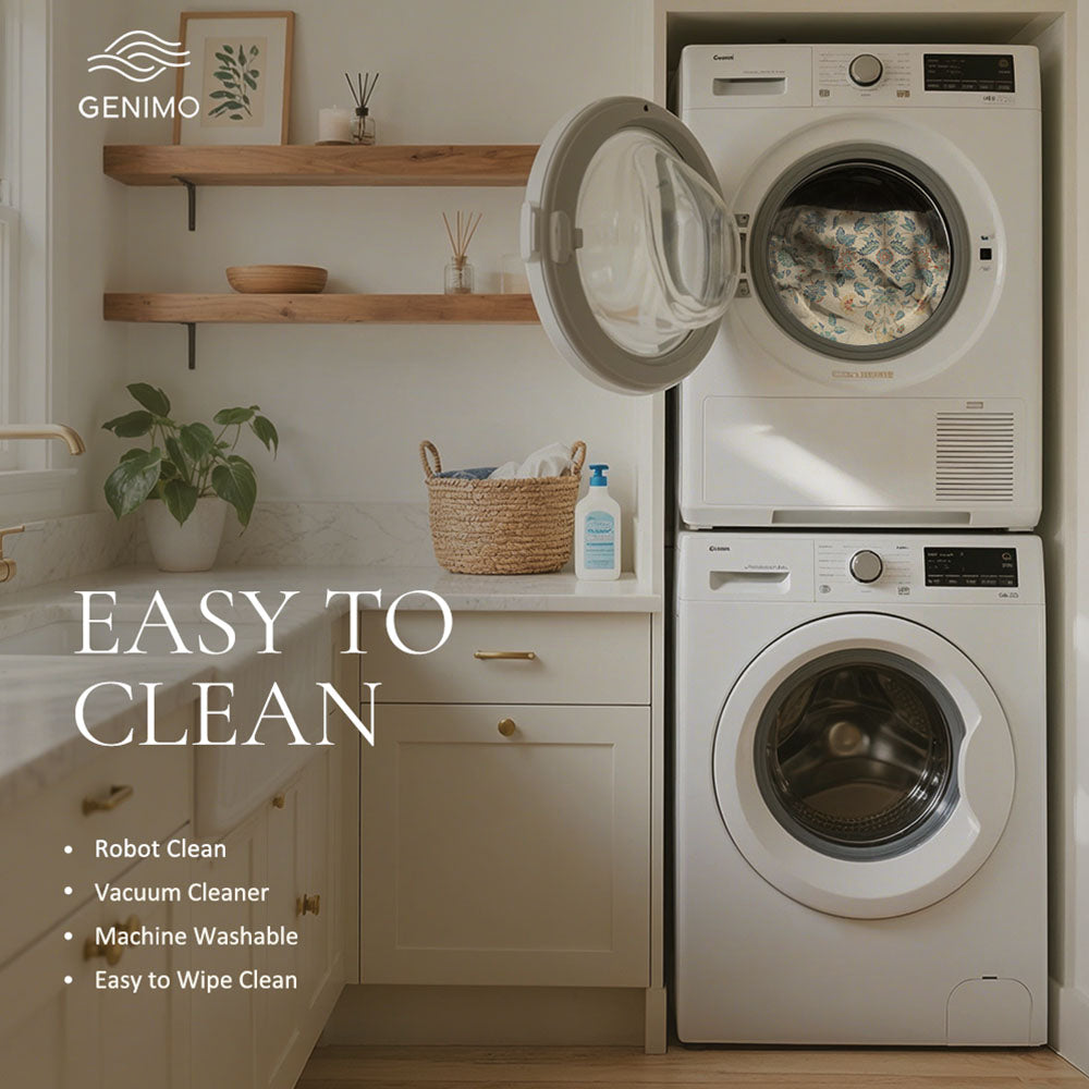 All GENIMO rugs are fully machine washable, making everyday care effortless.