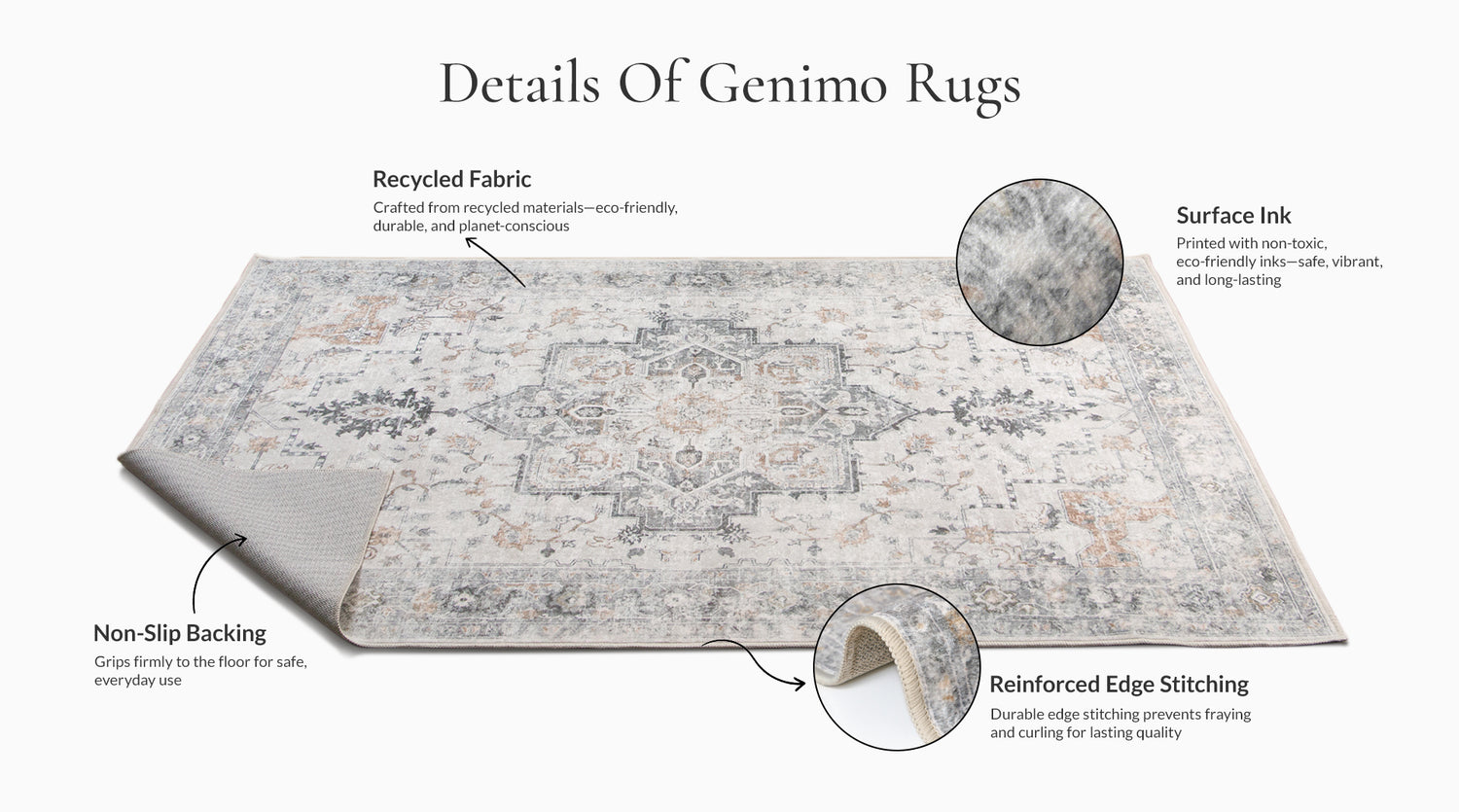 All GENIMO rugs are fully machine washable, making everyday care effortless.