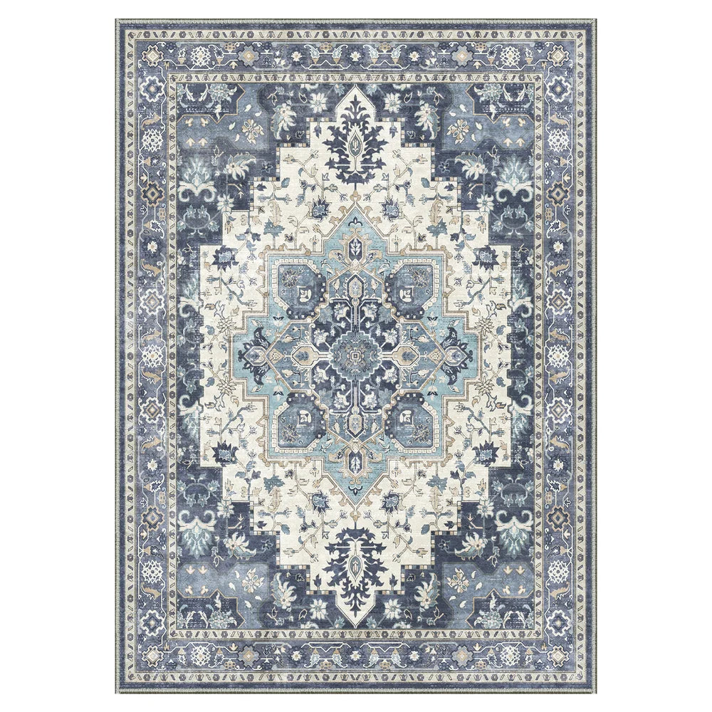 Daria Washable Vintage Persian Tribal Dark Blue Rug