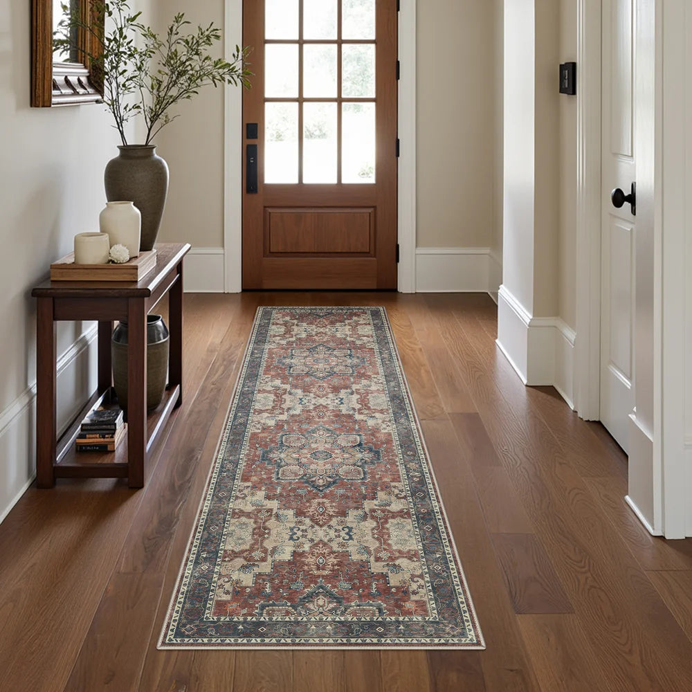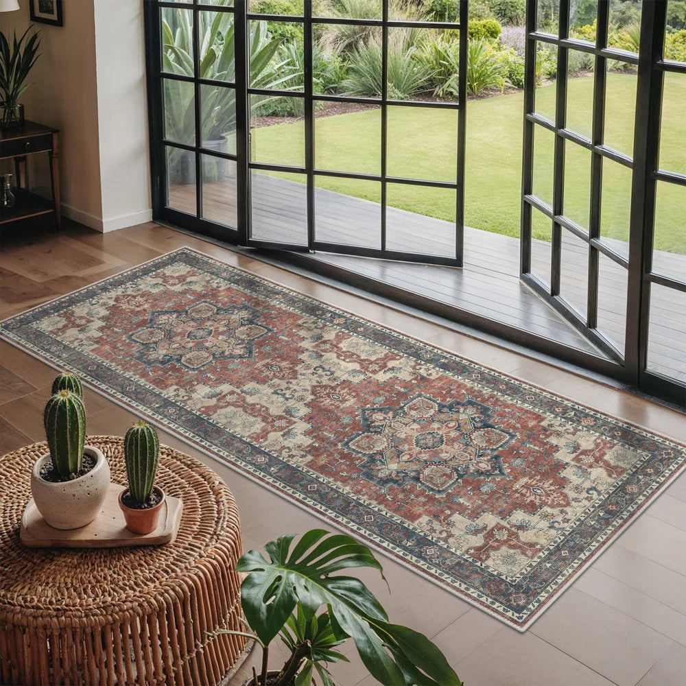 Introducing GENIMO Daria Washable Vintage Persian Tribal Rug—a sophisticated fusion of heritage craftsmanship and contemporary practicality. This exquisite piece showcases authentic Persian and Oriental design elements with classic tribal motifs rendered in elegant blue hues. Indulge in its luxuriously soft texture while enjoying the convenience of machine-washable care, ideal for households navigating daily life with grace. The secure non-slip foundation ensures stability on any floor, making it both a stunning focal point and a resilient choice for active families.