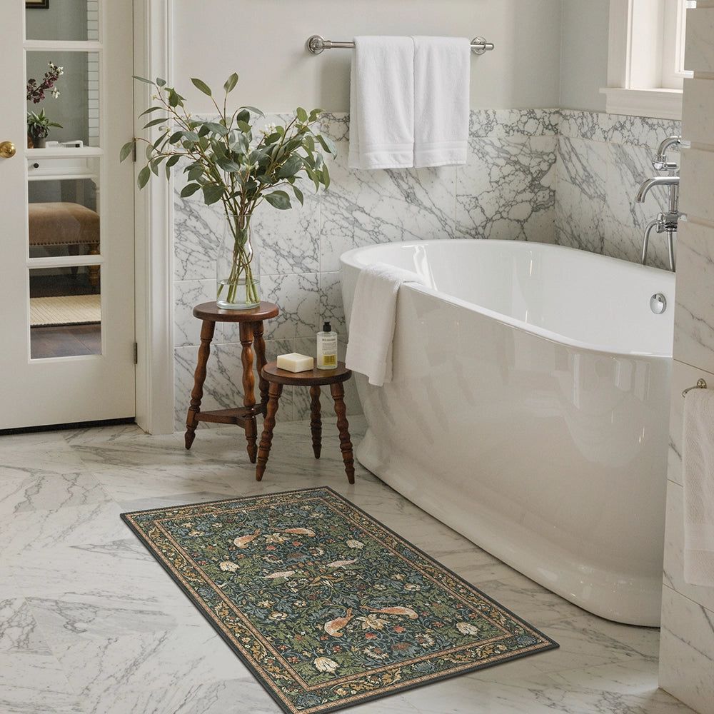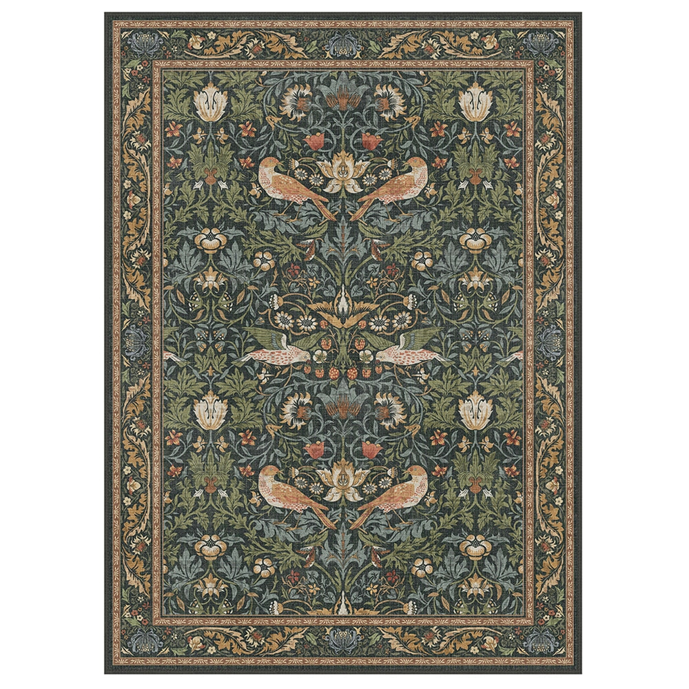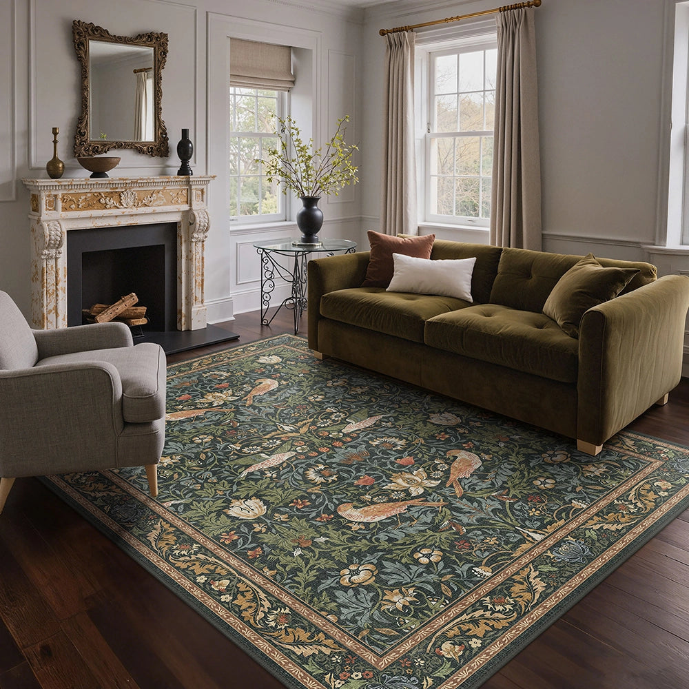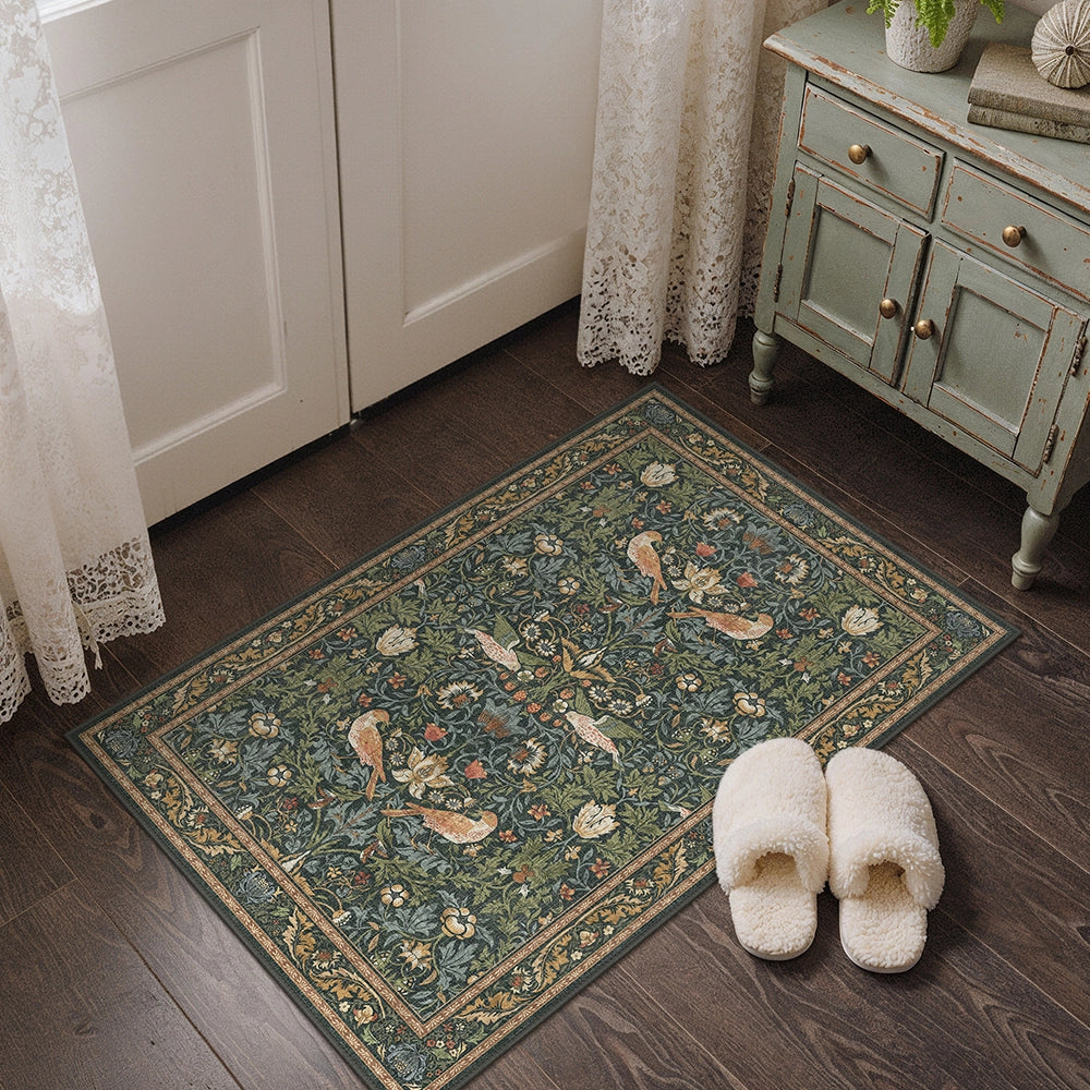 Flavira Washable Vintage Floral Bird Rug – Machine Washable, Pet Friendly & Spill Resistant
