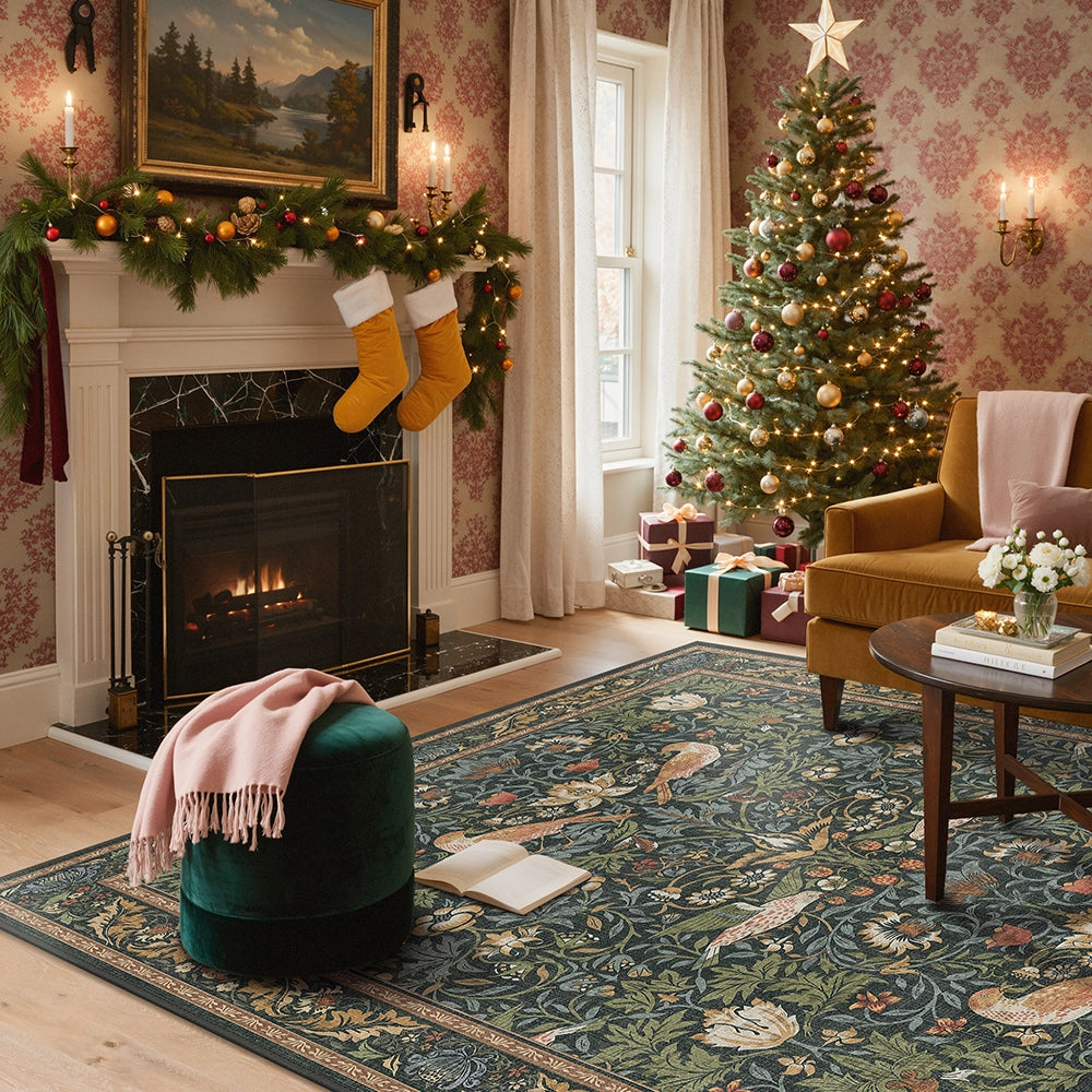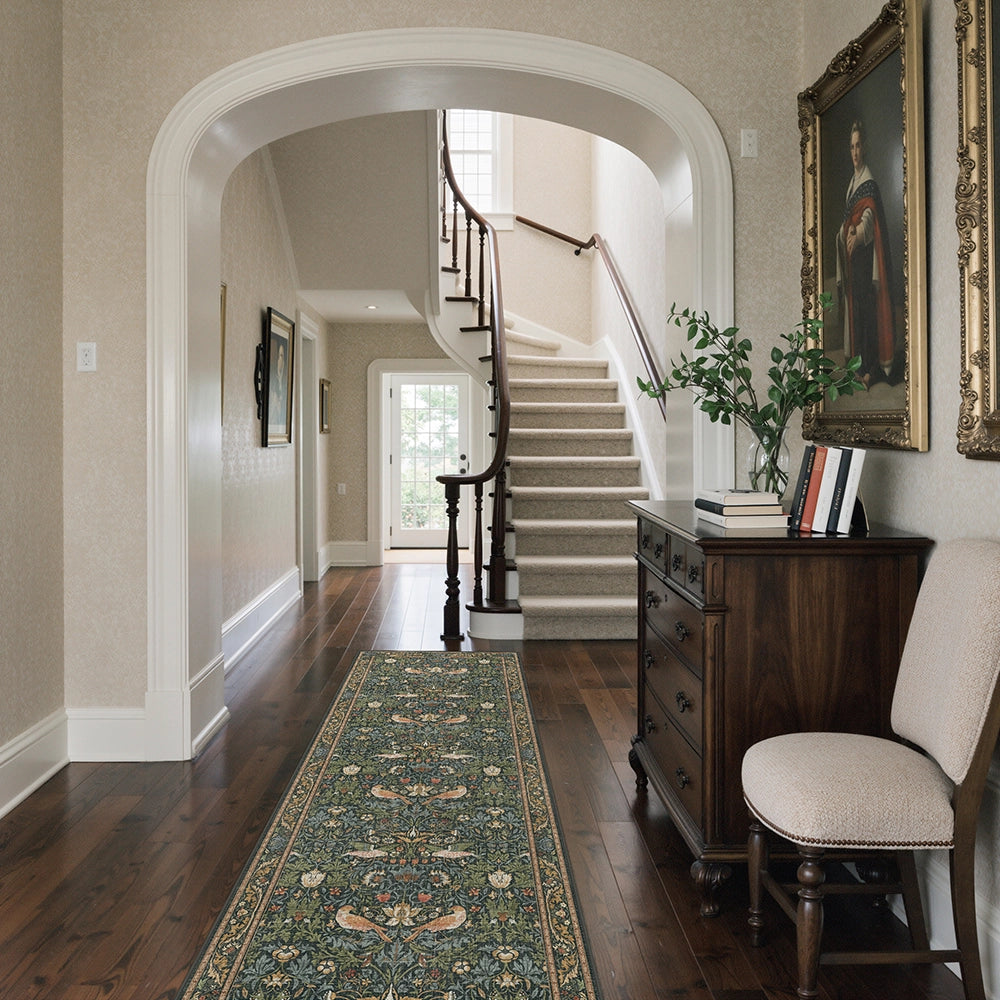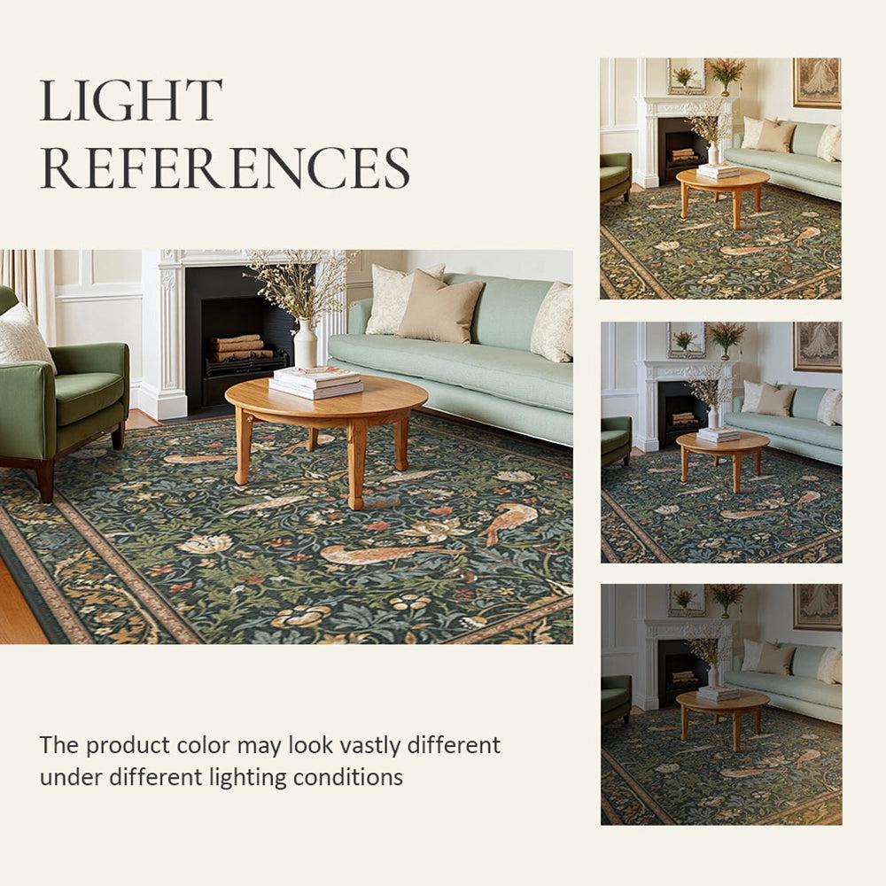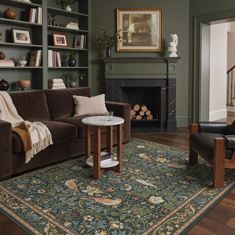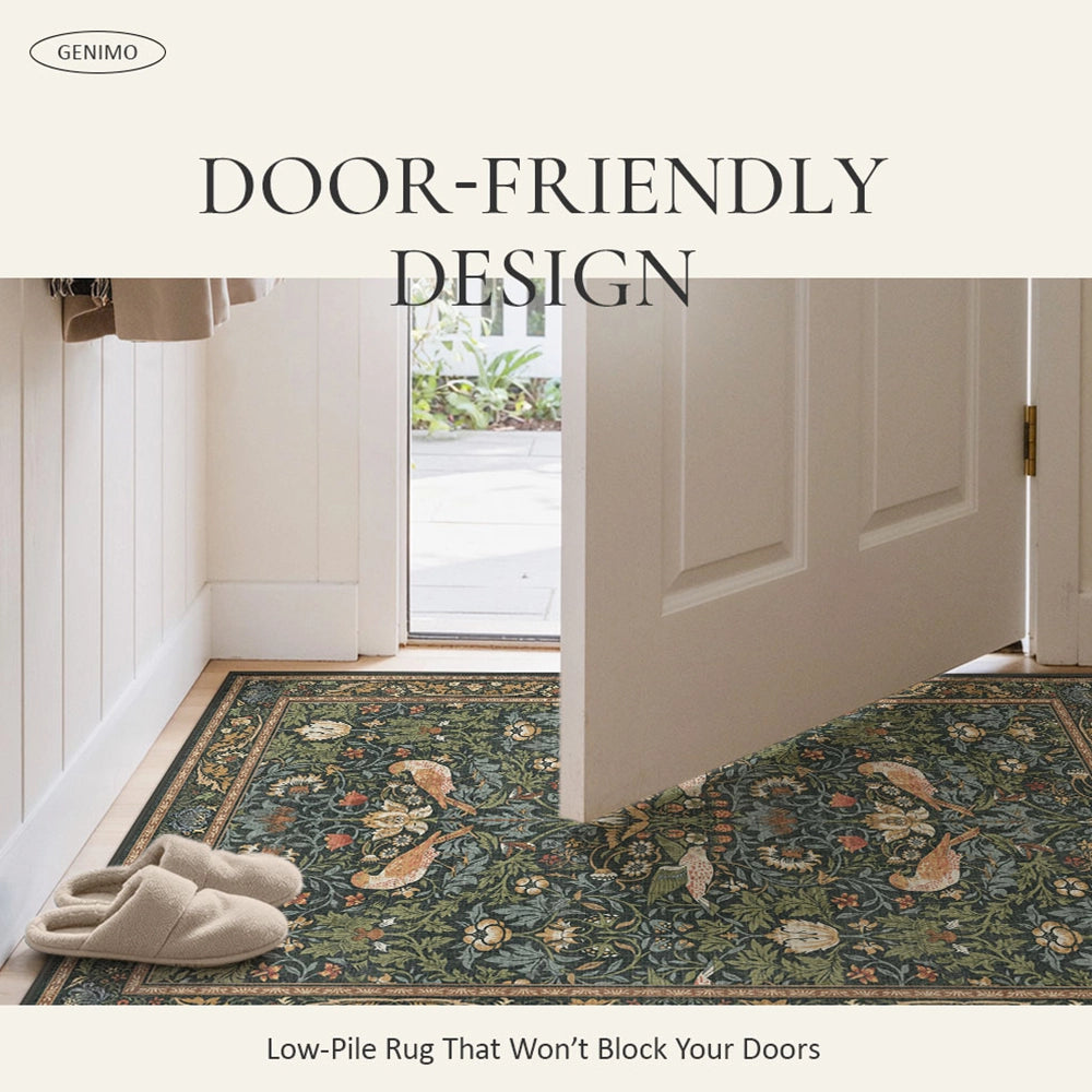 Flavira Washable Vintage Floral Bird Rug – Machine Washable, Pet Friendly & Spill Resistant