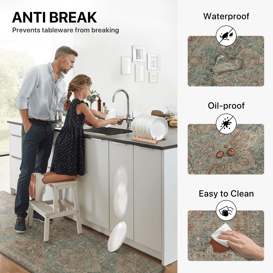 The waterproof layer prevents liquids from seeping through, protecting floors from drinks, pet bowls, and accidental spills while keeping your home clean and tidy