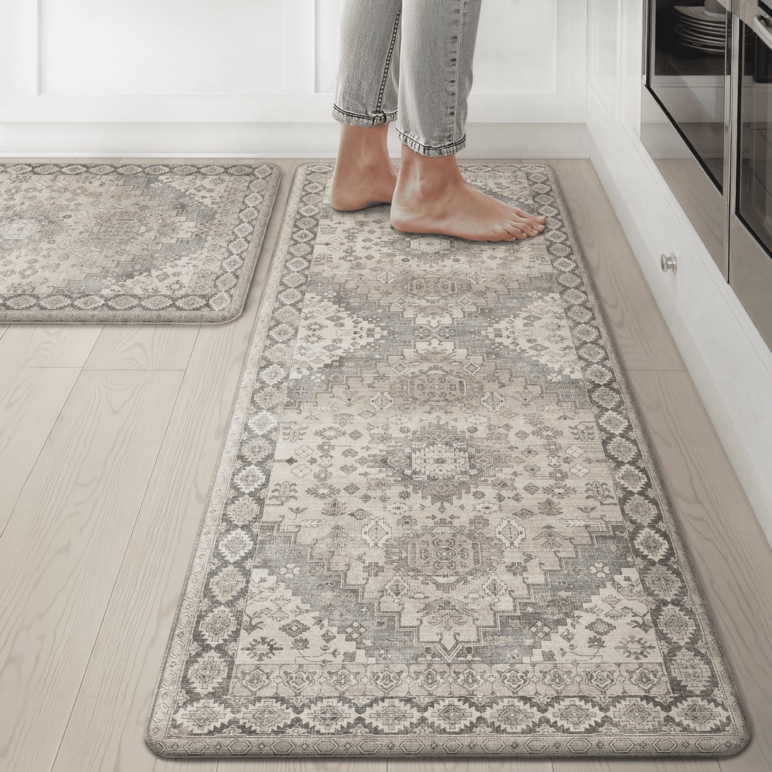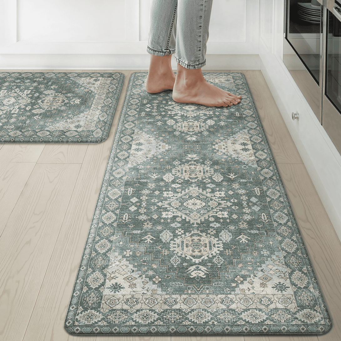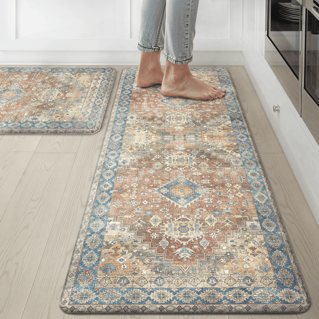 GENIMO 2Pcs Anti Fatigue Padded Kitchen Floor Mat Non Slip Washable Runner Rug for Sink in Persian