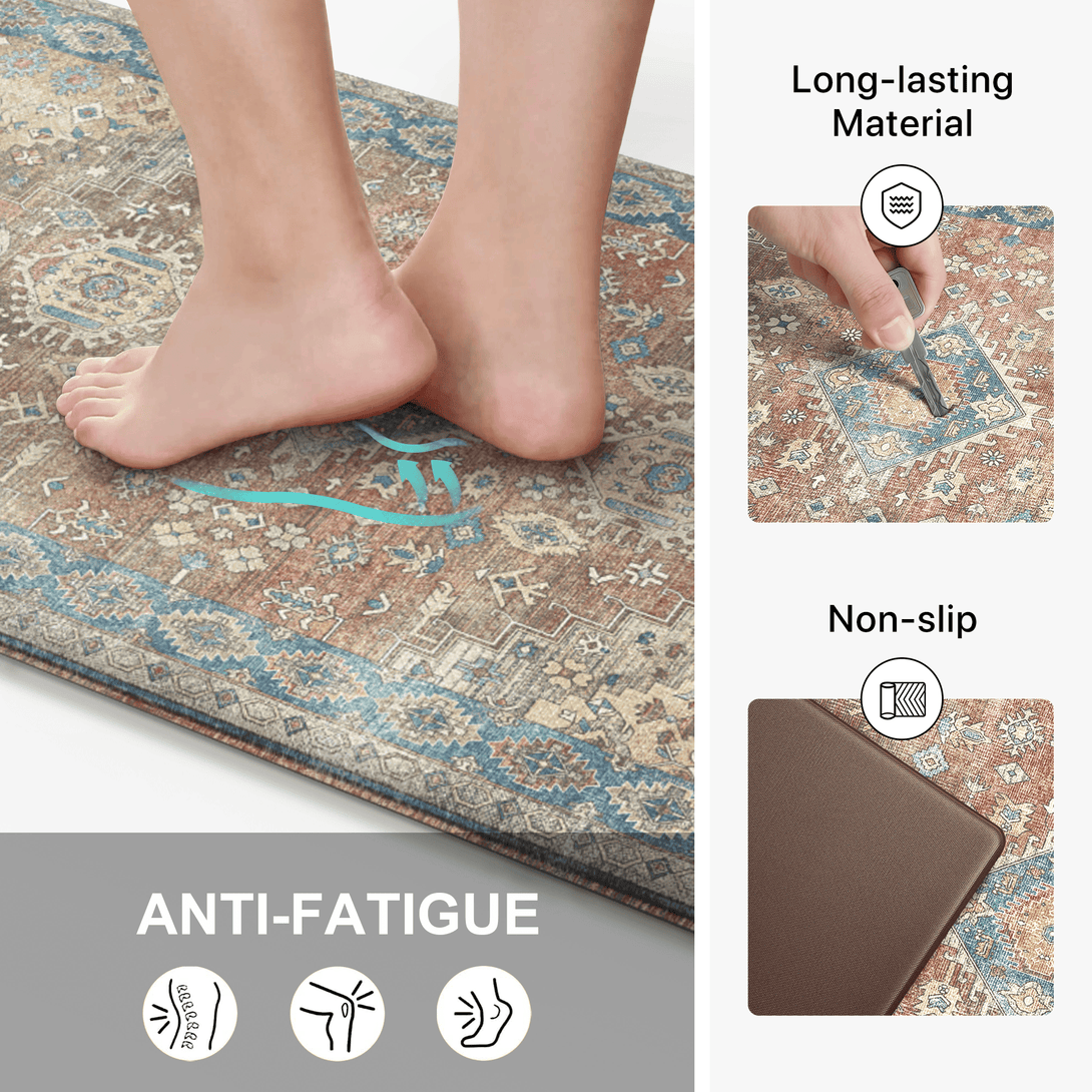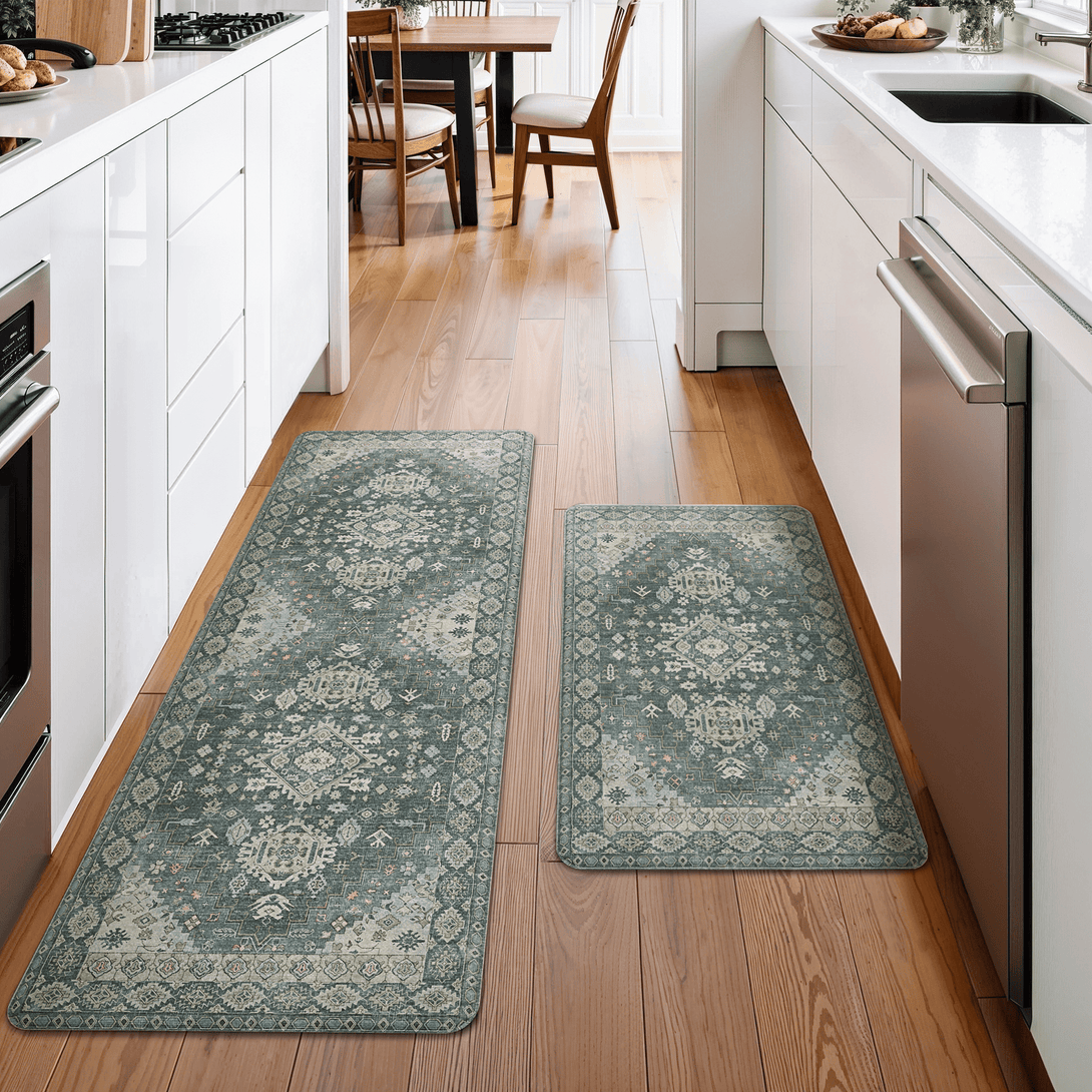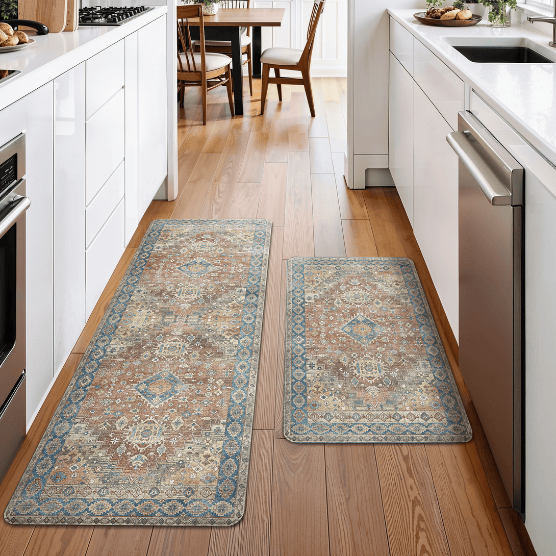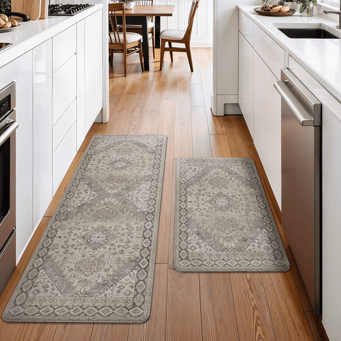 GENIMO 2Pcs Anti Fatigue Padded Kitchen Floor Mat Non Slip Washable Runner Rug for Sink in Persian