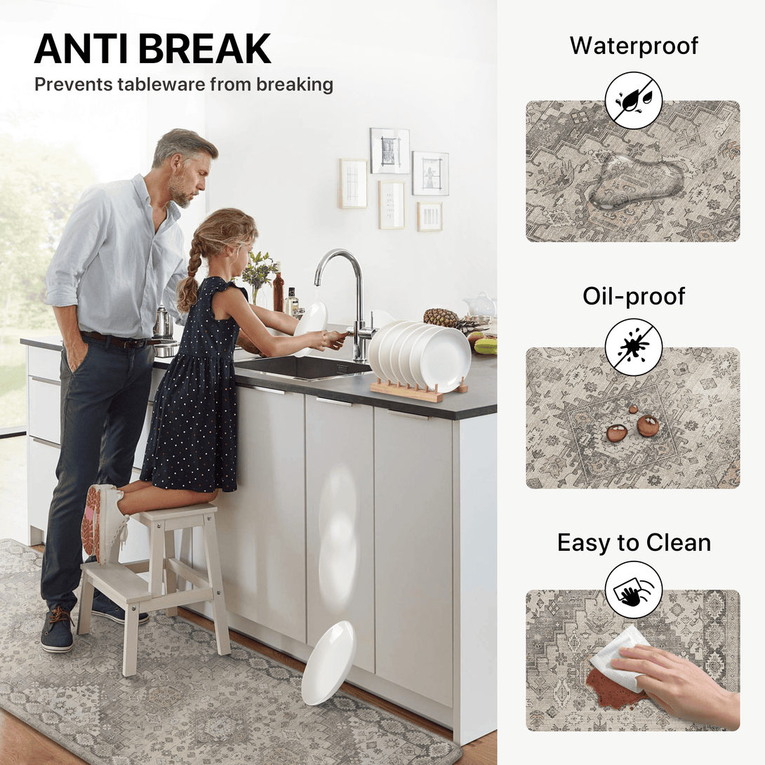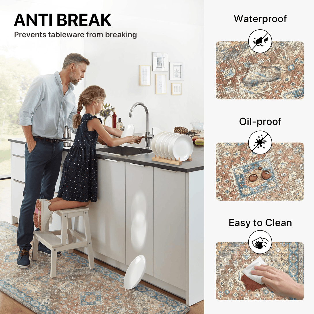 The waterproof layer prevents liquids from seeping through, protecting floors from drinks, pet bowls, and accidental spills while keeping your home clean and tidy