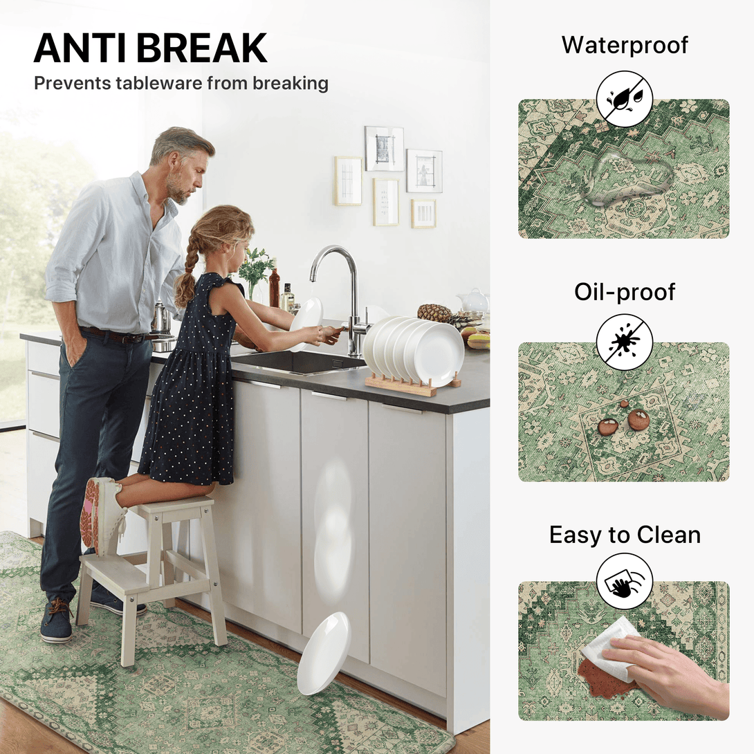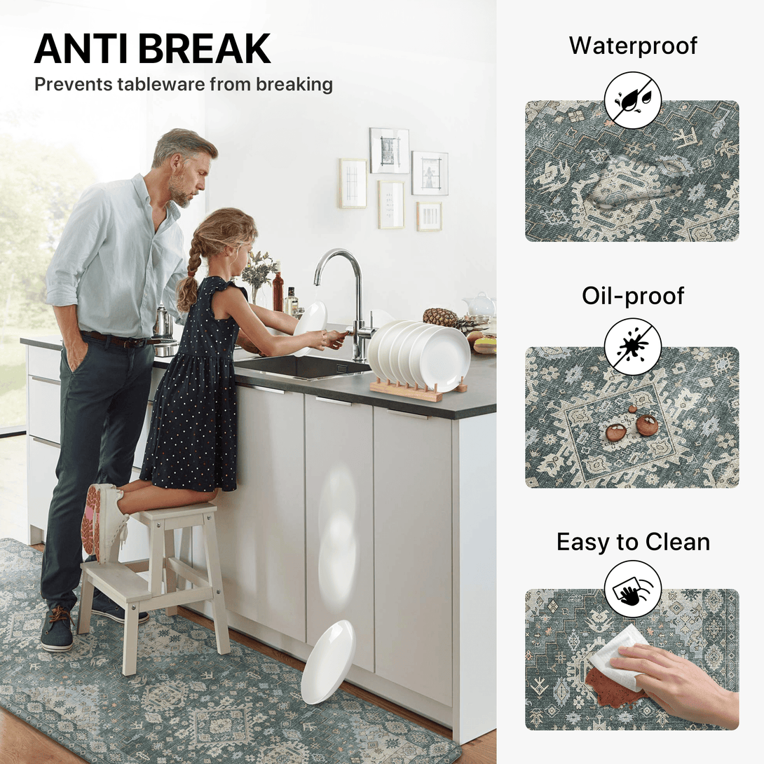 Whether preparing family meals, drying dishes, or working at your kitchen counter, GENIMO‘s Anti Fatigue runner rugs brings both comfort and protection to your daily routine.