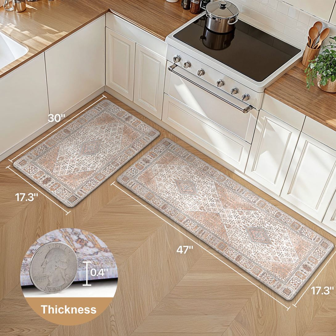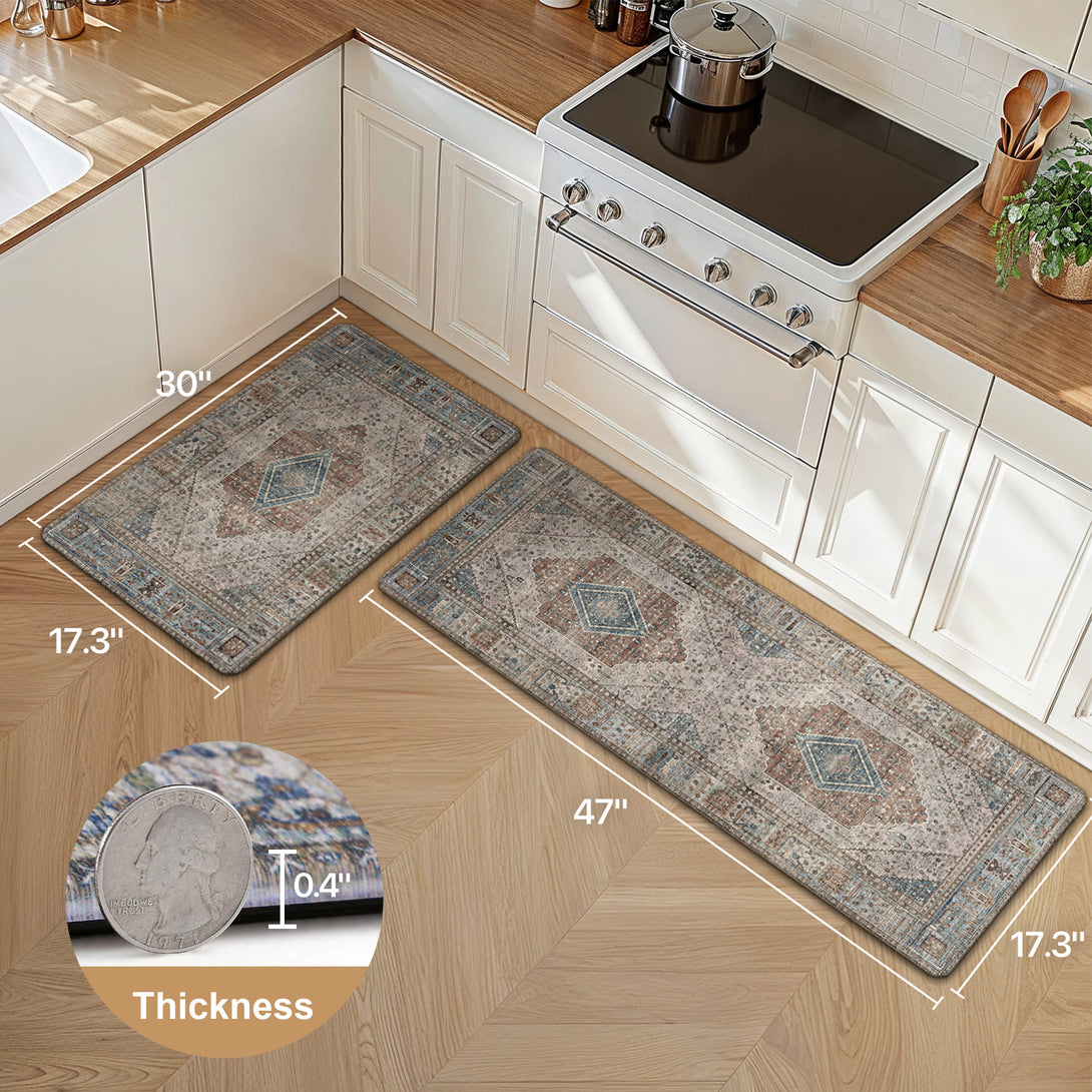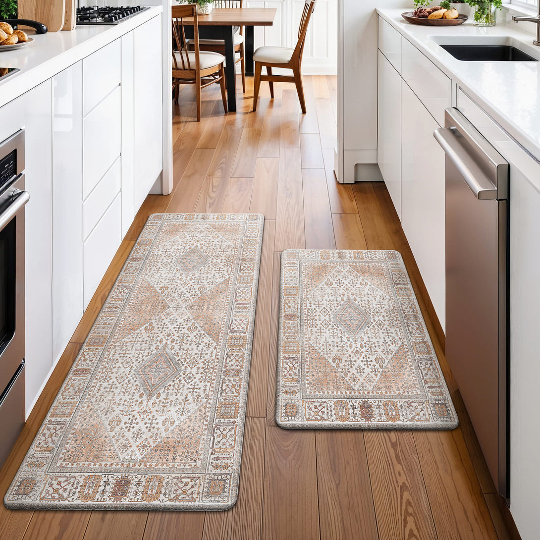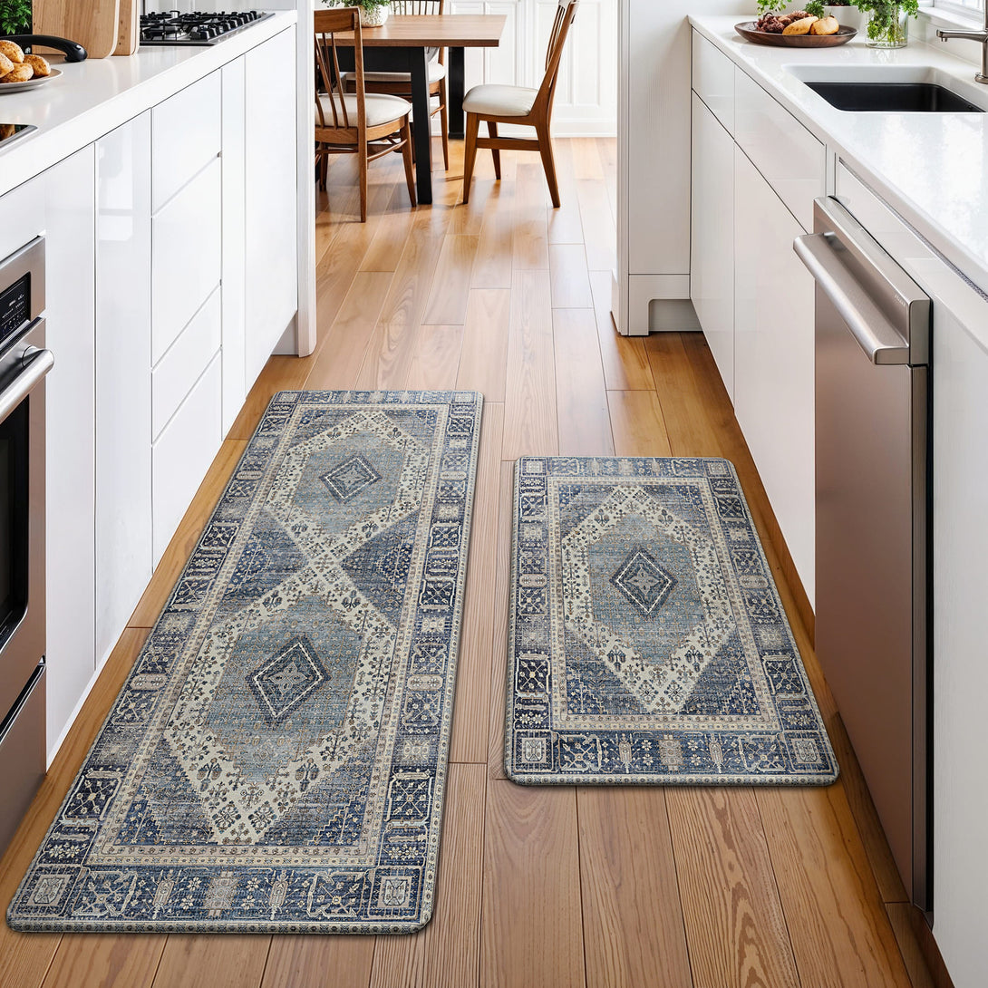 GENIMO 2Pcs Anti Fatigue Padded Kitchen Mats for Floor Oriental Washable Runner Rug