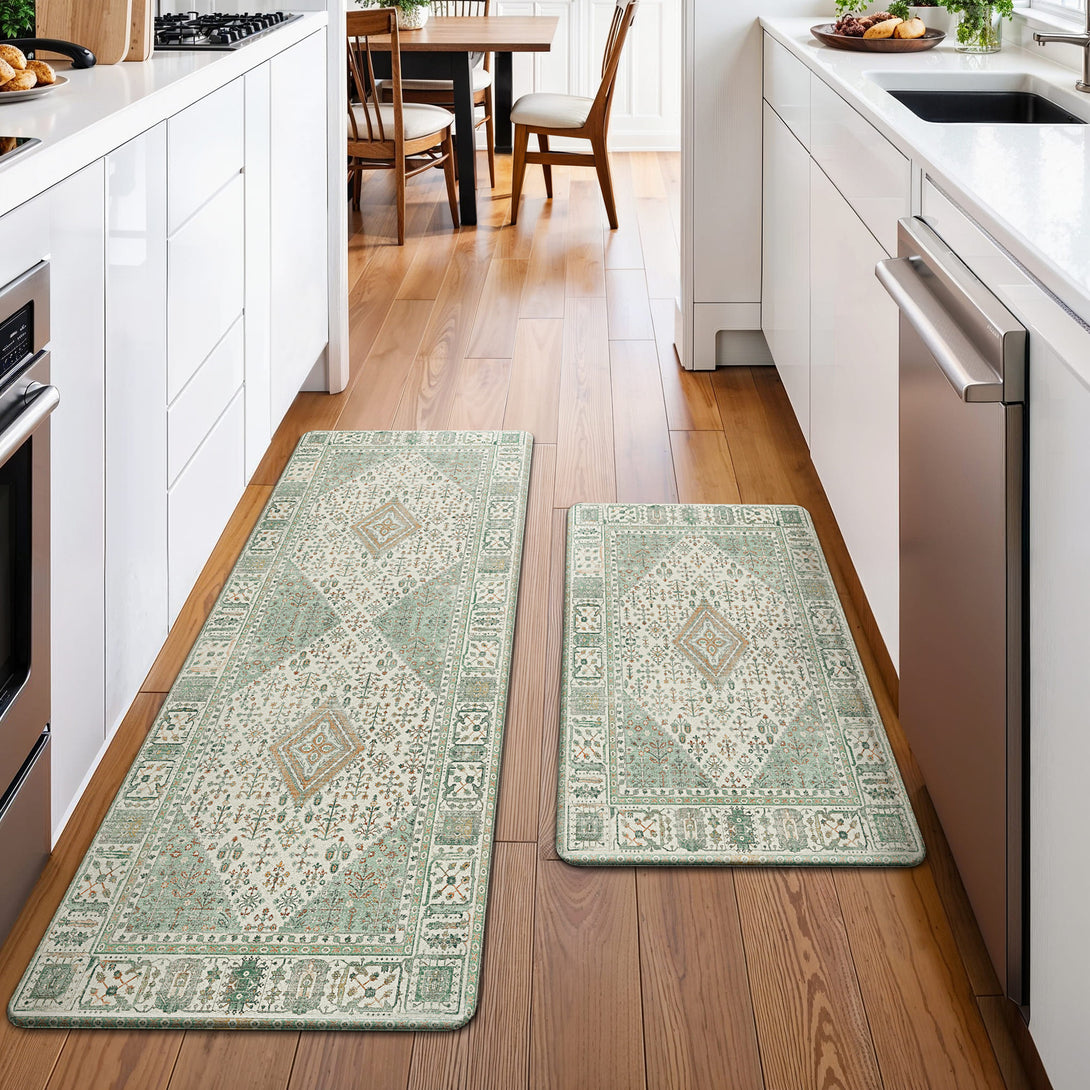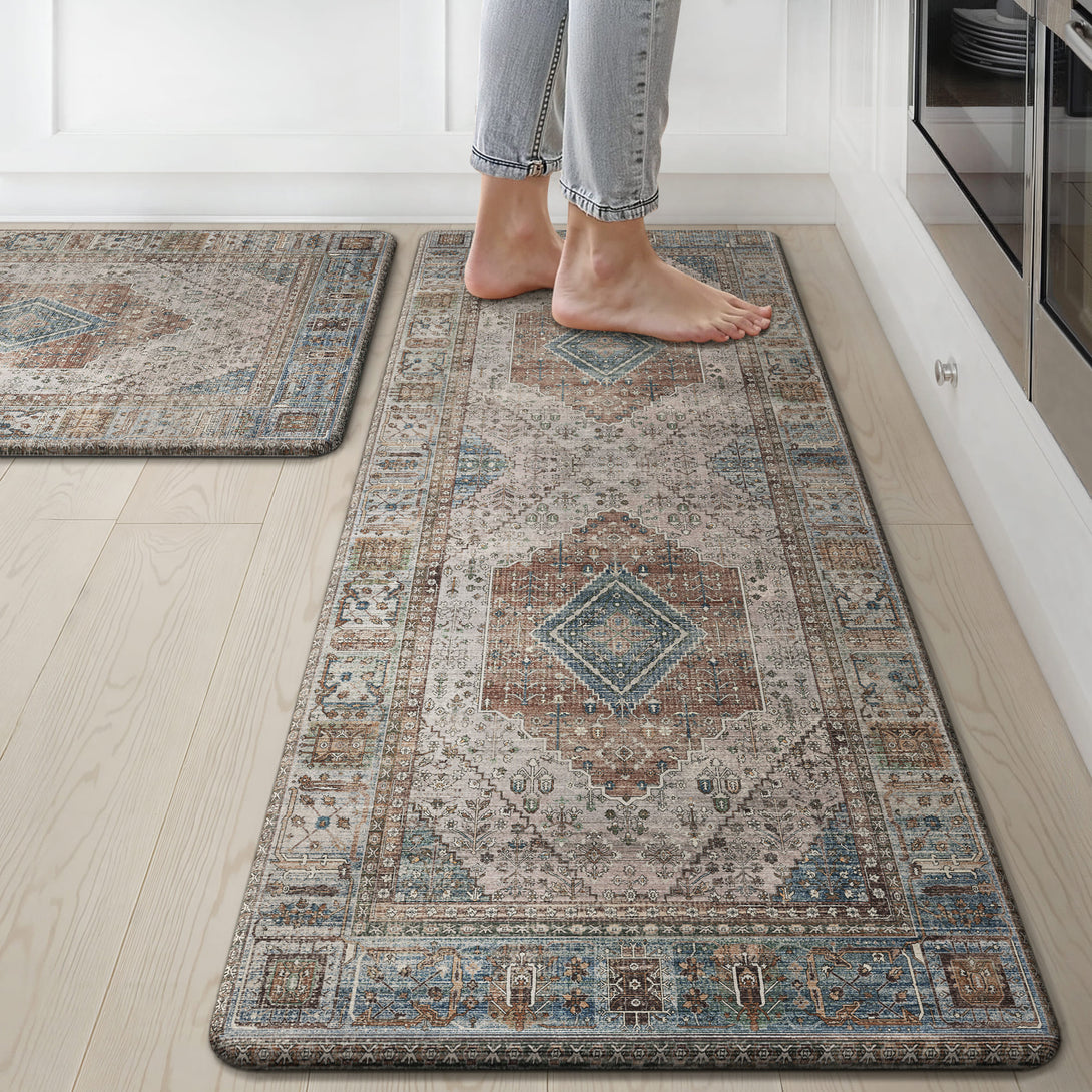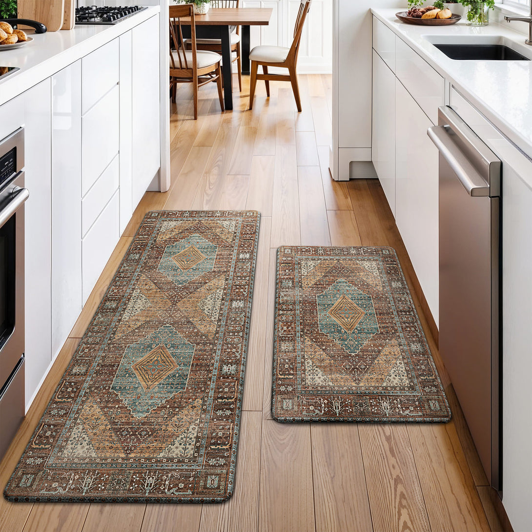 GENIMO 2Pcs Anti Fatigue Padded Kitchen Mats for Floor Oriental Washable Runner Rug
