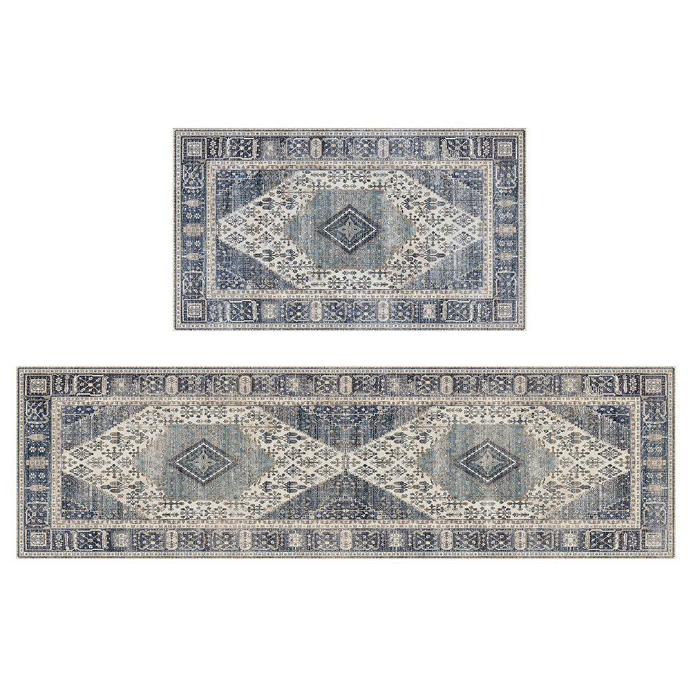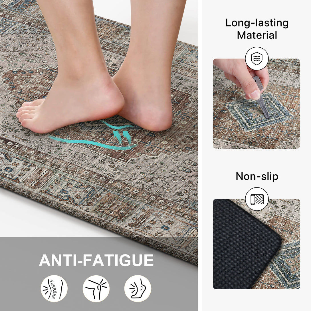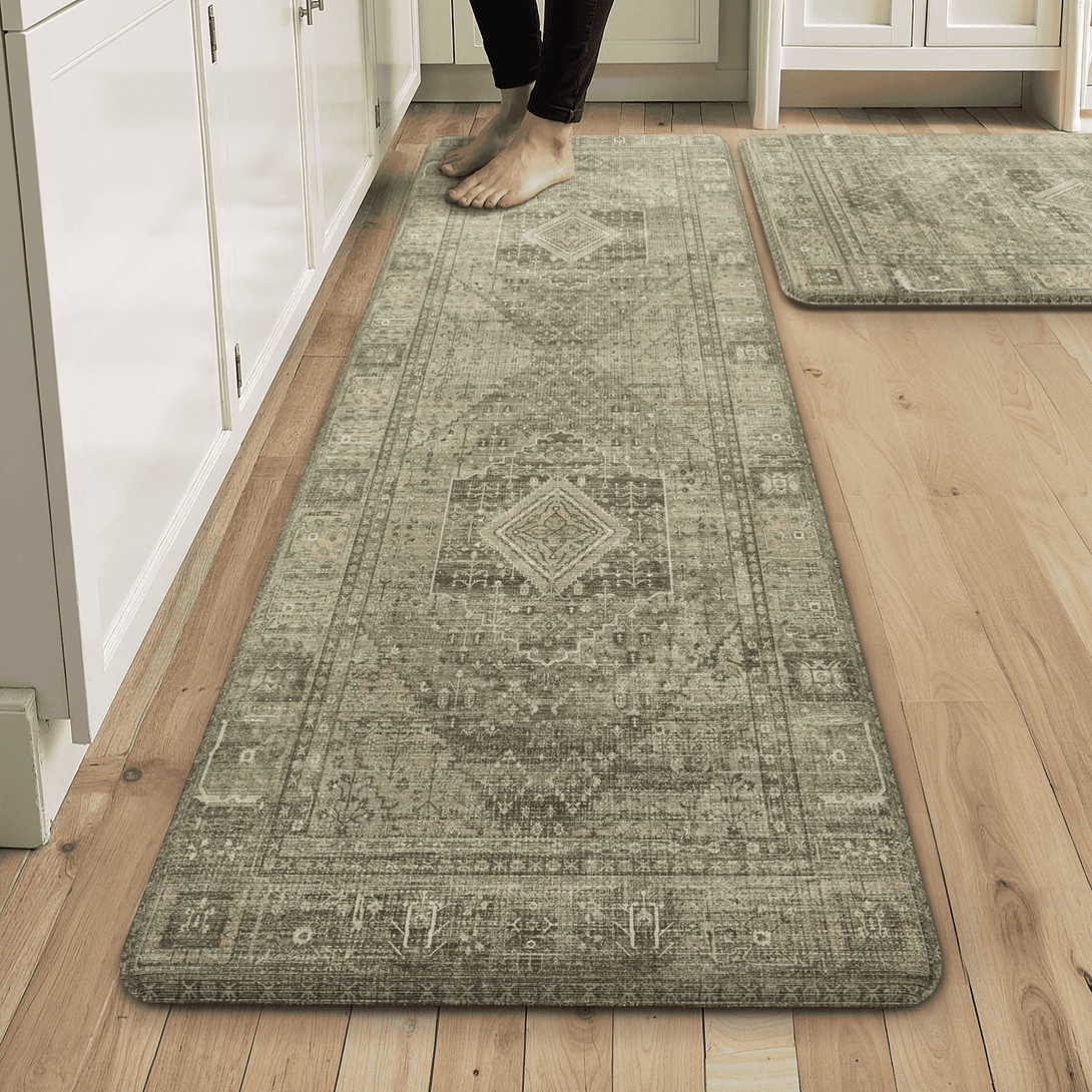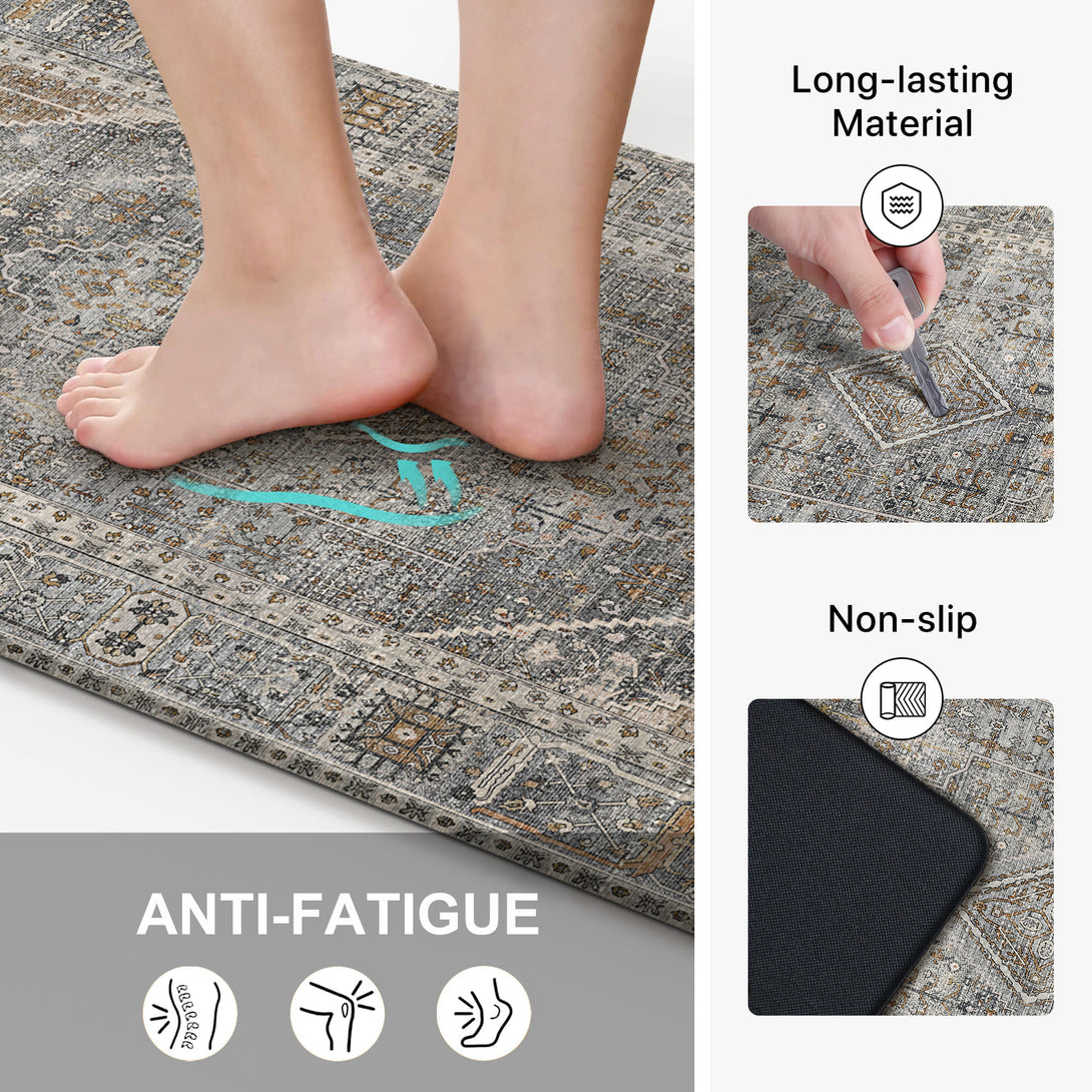 GENIMO 2Pcs Anti Fatigue Padded Kitchen Mats for Floor Oriental Washable Runner Rug