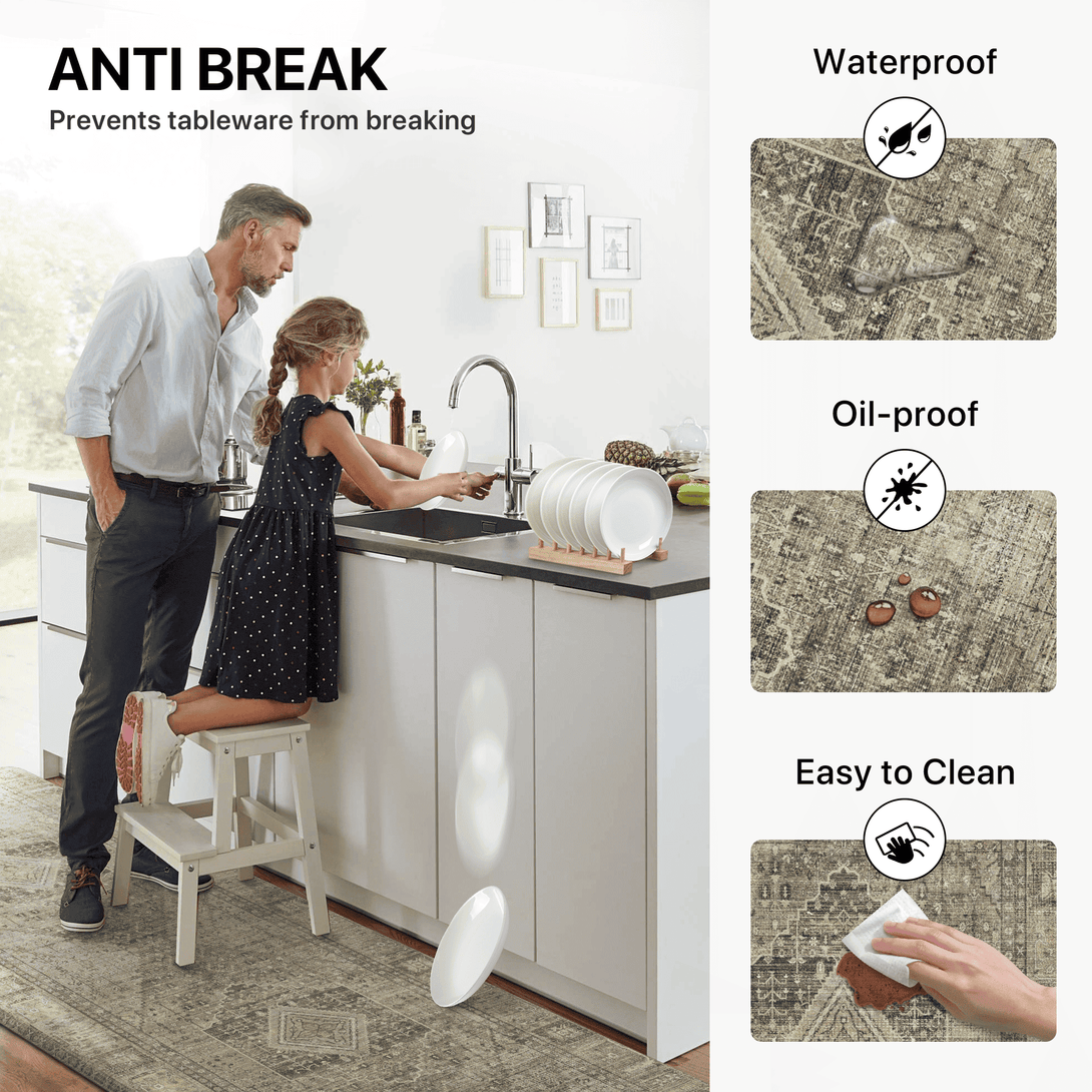 The waterproof layer prevents liquids from seeping through, protecting floors from drinks, pet bowls, and accidental spills while keeping your home clean and tidy