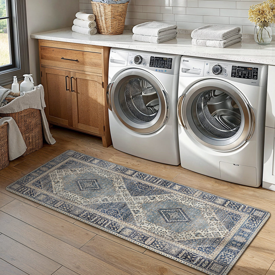Most genimorug rugs are machine washable (large rugs fit best in 5.5 cu ft or larger machines). Pre-clean dust and stains, wash in cold water on a gentle cycle with mild detergent, then air-dry or tumble-dry on low heat.