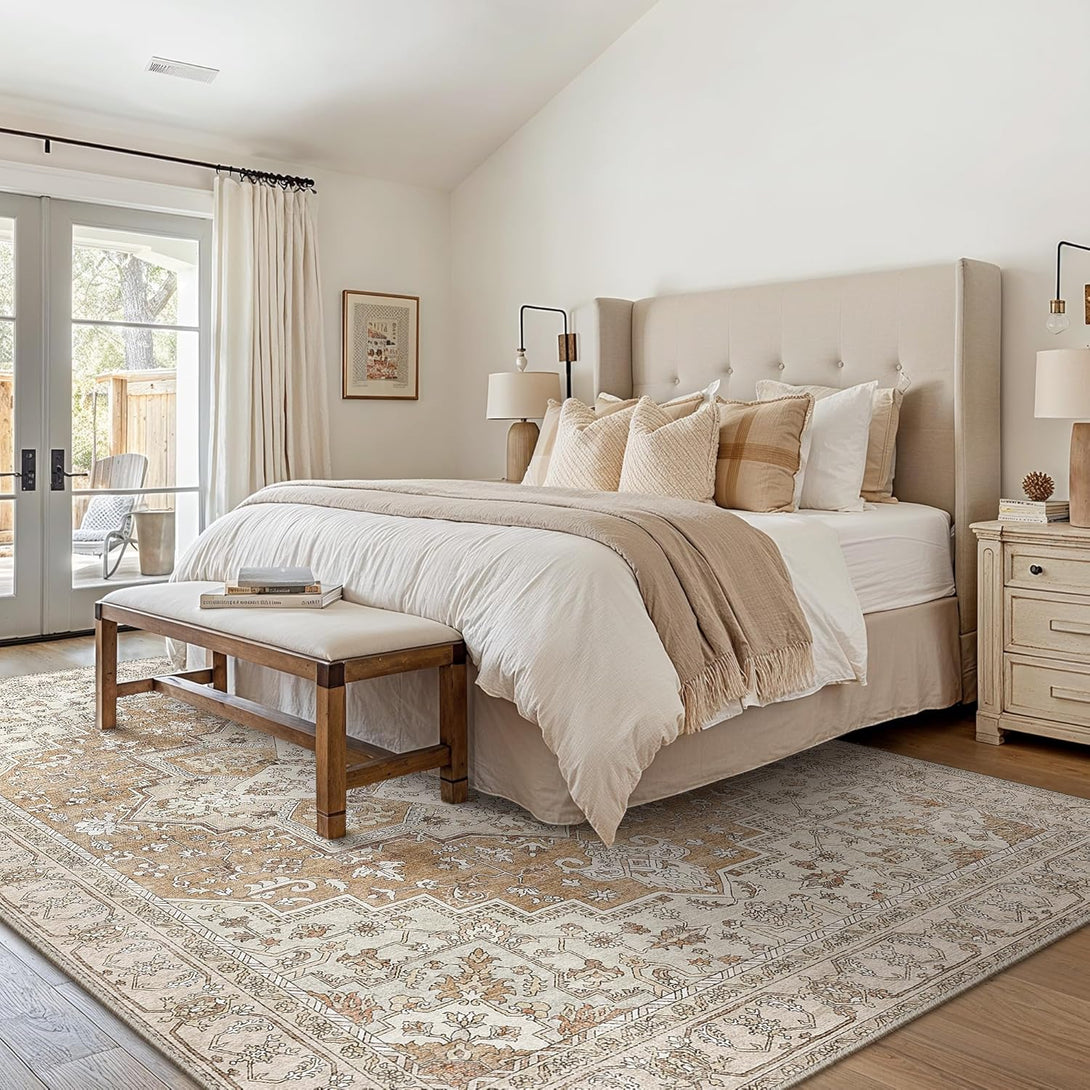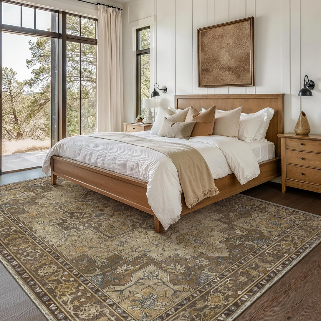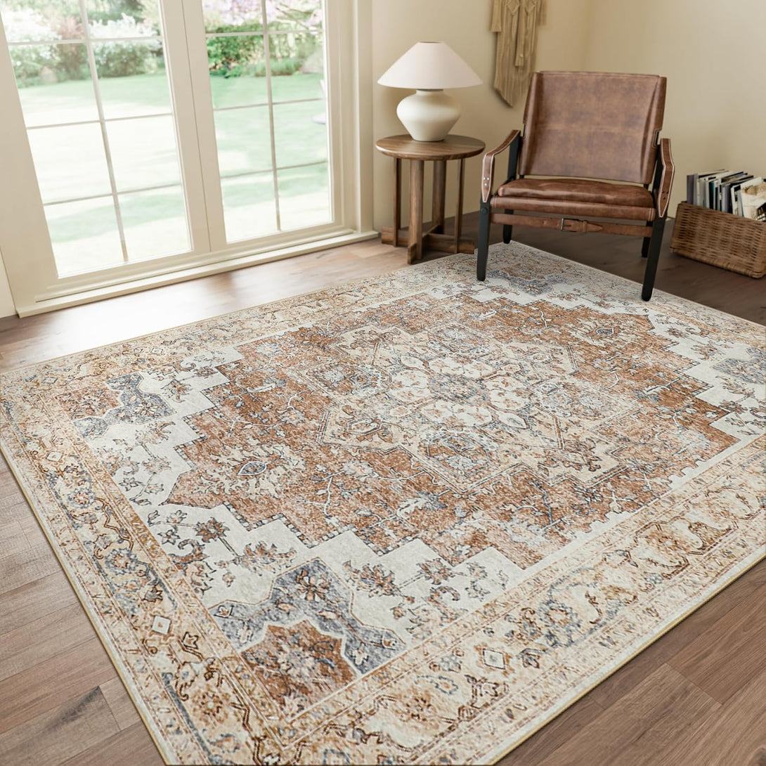 GENIMO Area Rug Machine Washable Vintage Bohemian Print