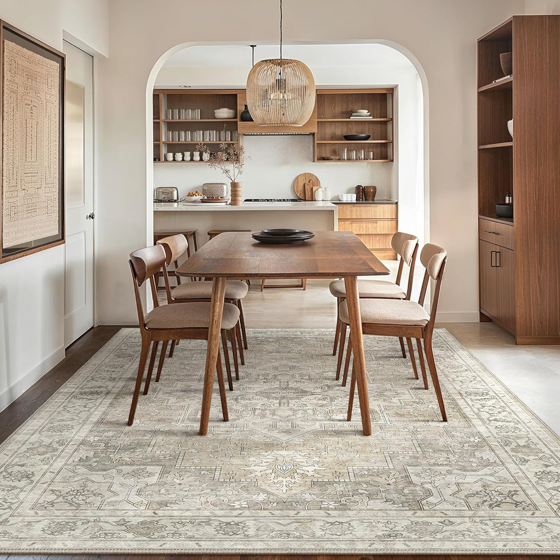 - Long-lasting Rug: Made with long-lasting fibers and dense machine weaving, our low-pile rug stands up to heavy foot traffic. The soft surface is non-shedding, soundproof, and helps hide stains. The sturdy square edge brings extra resilience, making it suitable for high-traffic areas like the living room, dining room, and office. Any creases can be easily smoothed by rolling the rug in the opposite direction and weighting it down for 24 hours.