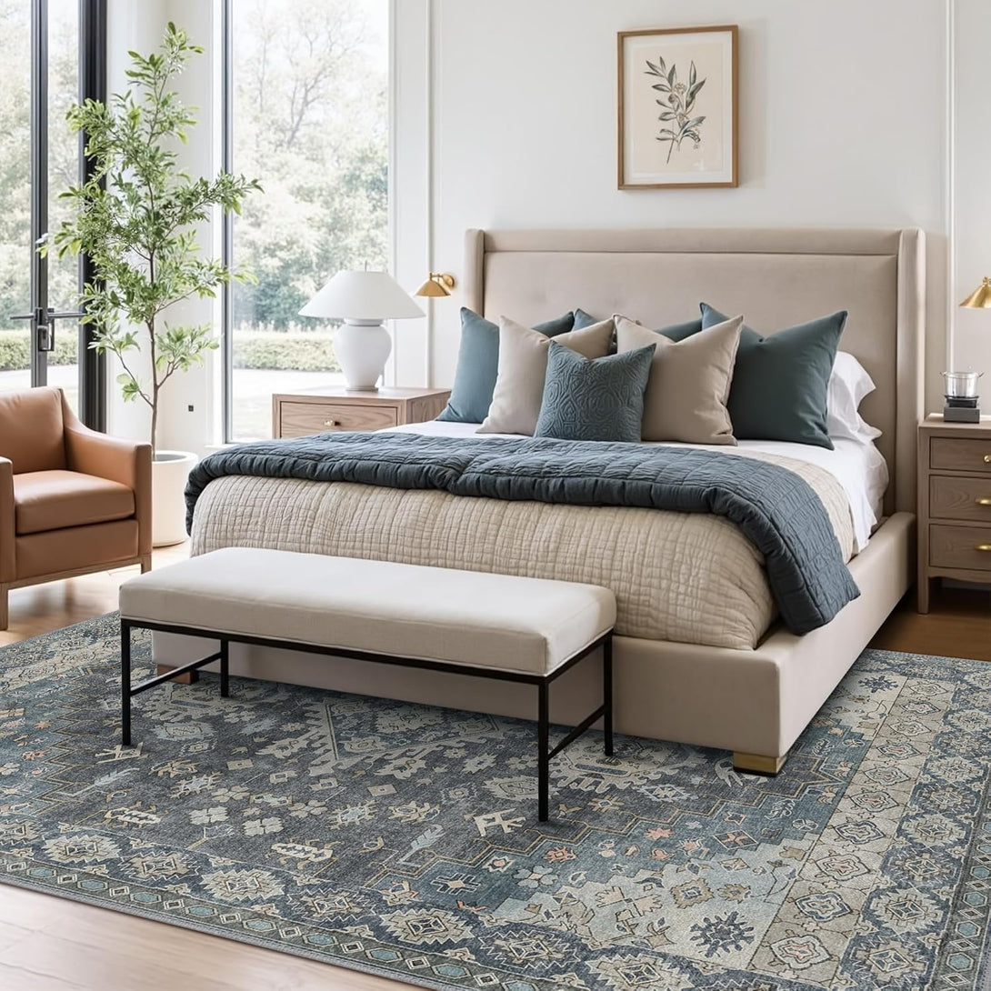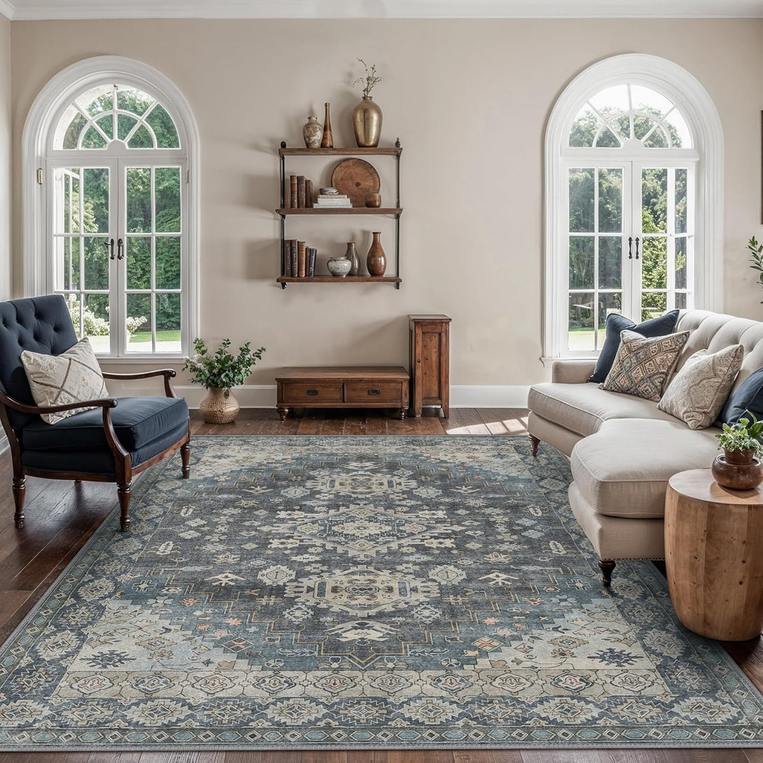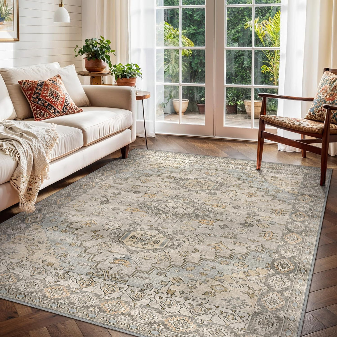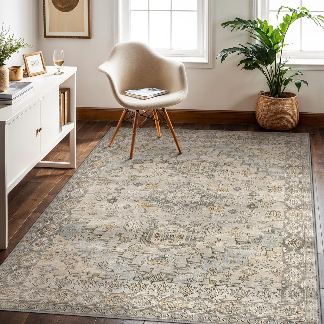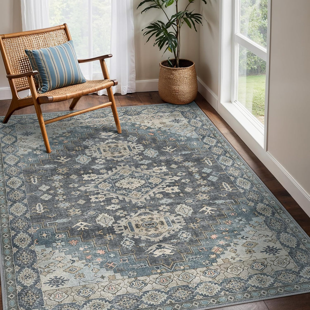 GENIMO Area Rug Washable Low Pile Bohemian Cool Colors
