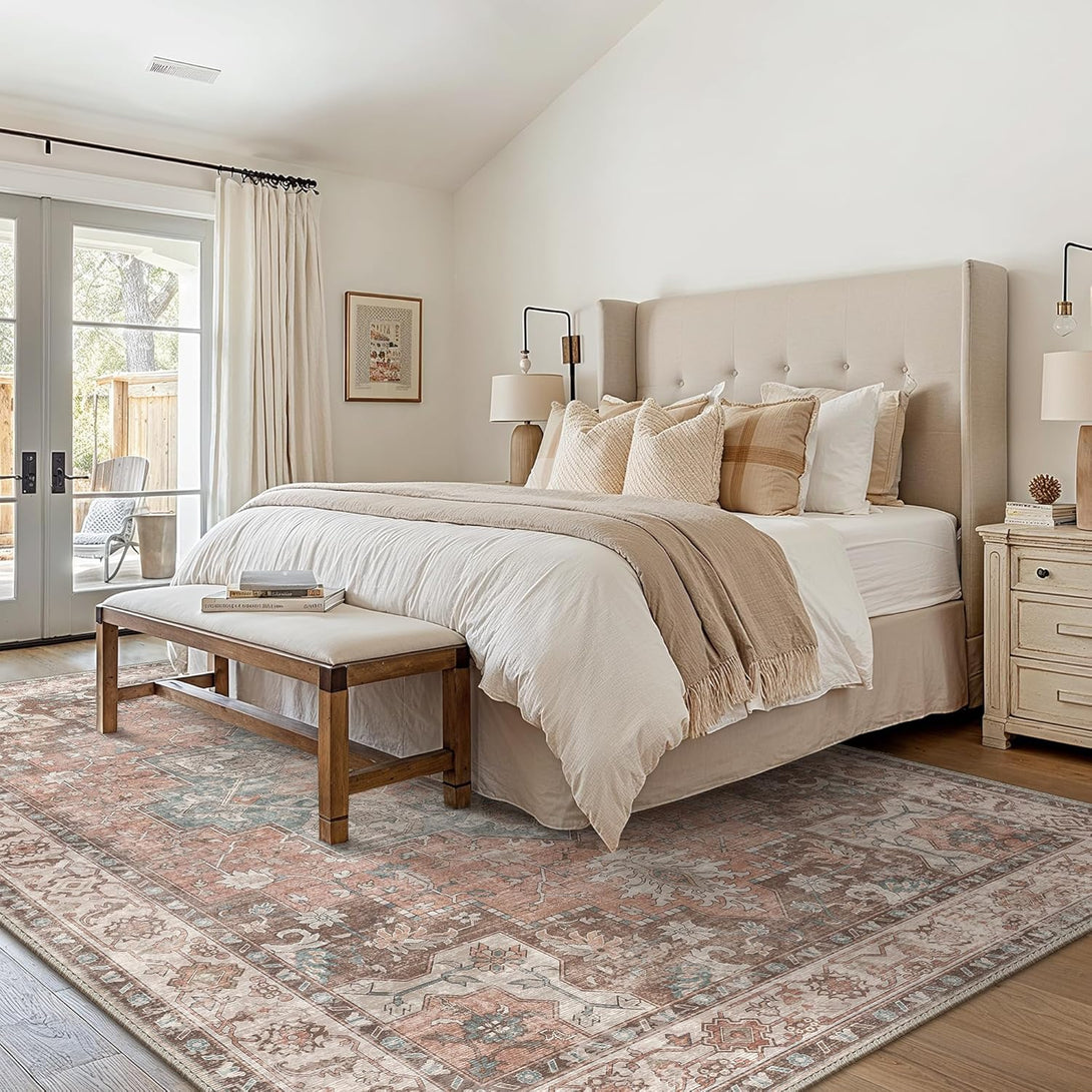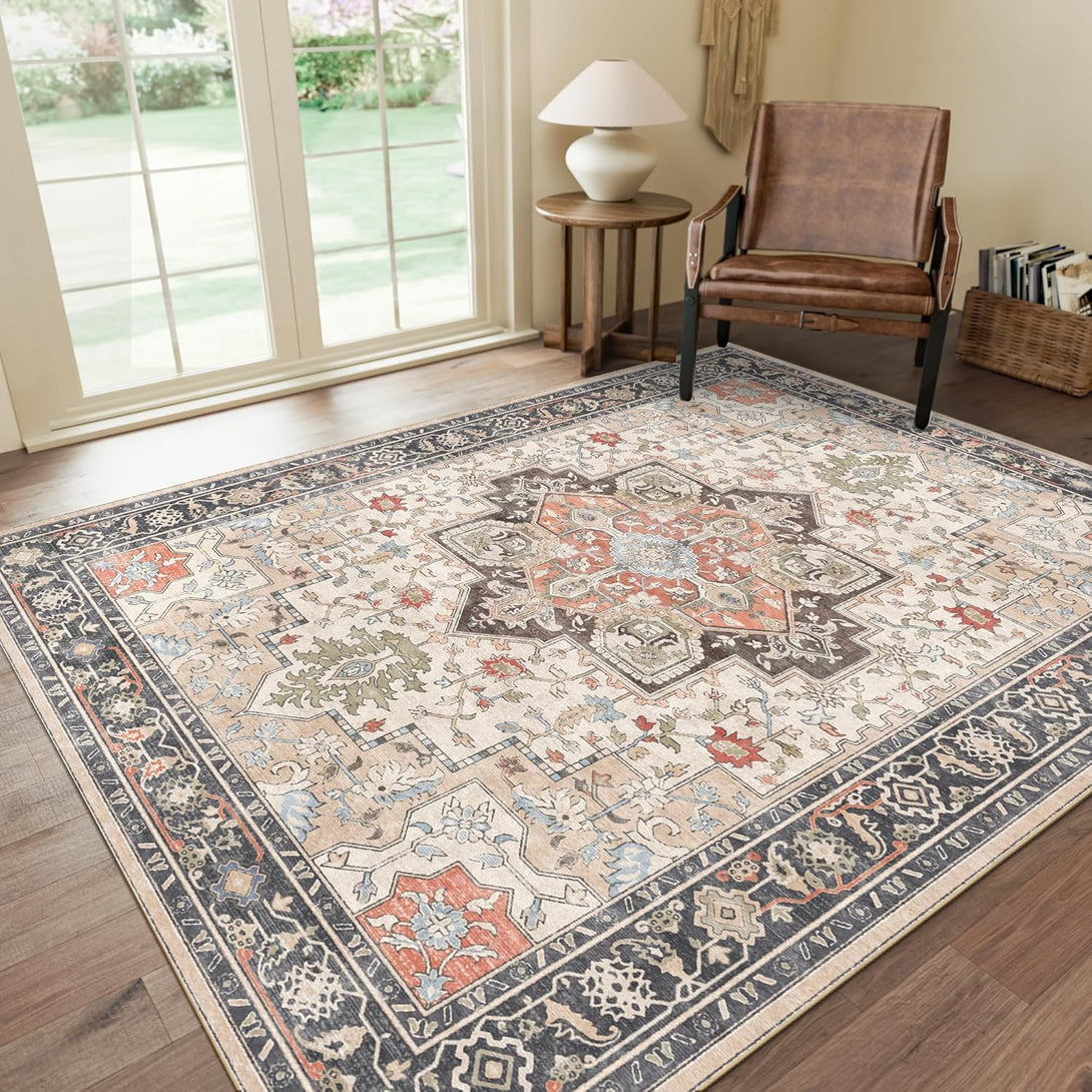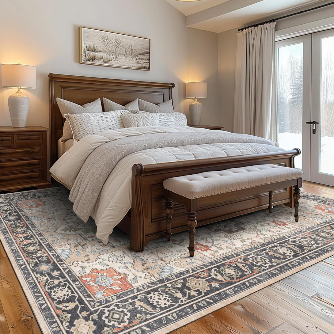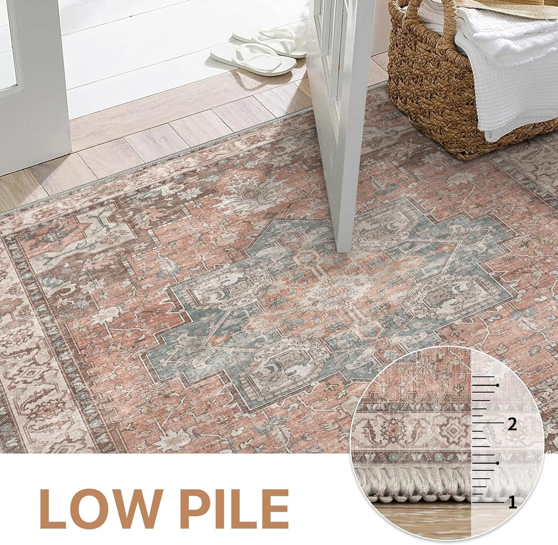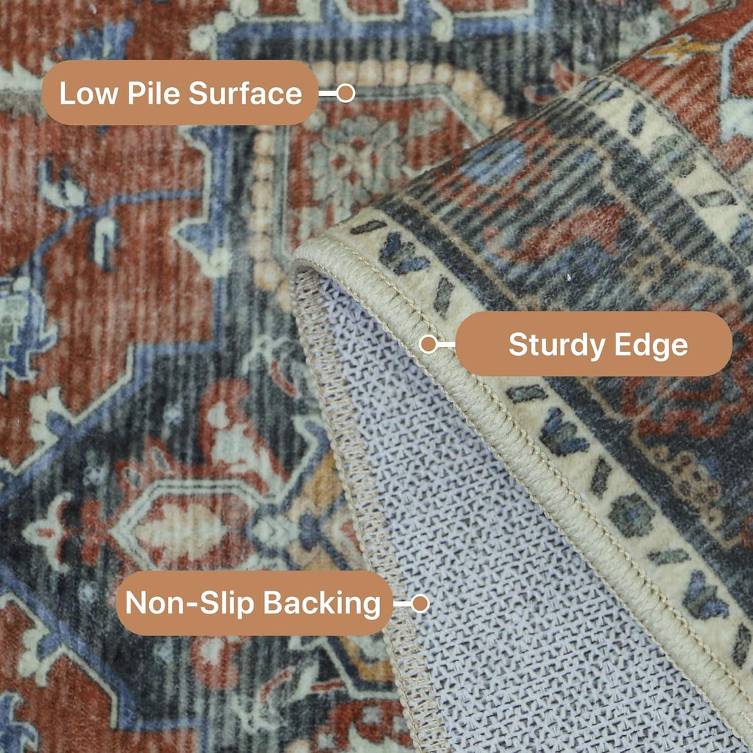 - Soft & Well Designed: This area rug captures the opulence of vintage design with intricate floral patterns in harmonious shades. Made from high-quality low pile soft fibers, it provids a certain degree of cushioning for the feet. This vintage rug skillfully captures a blend of classic, modern, boho, faded, delivering not just striking design but also a sumptuously soft texture. The pattern and color vividly match the images, with consistent coloring throughout the entire piece.