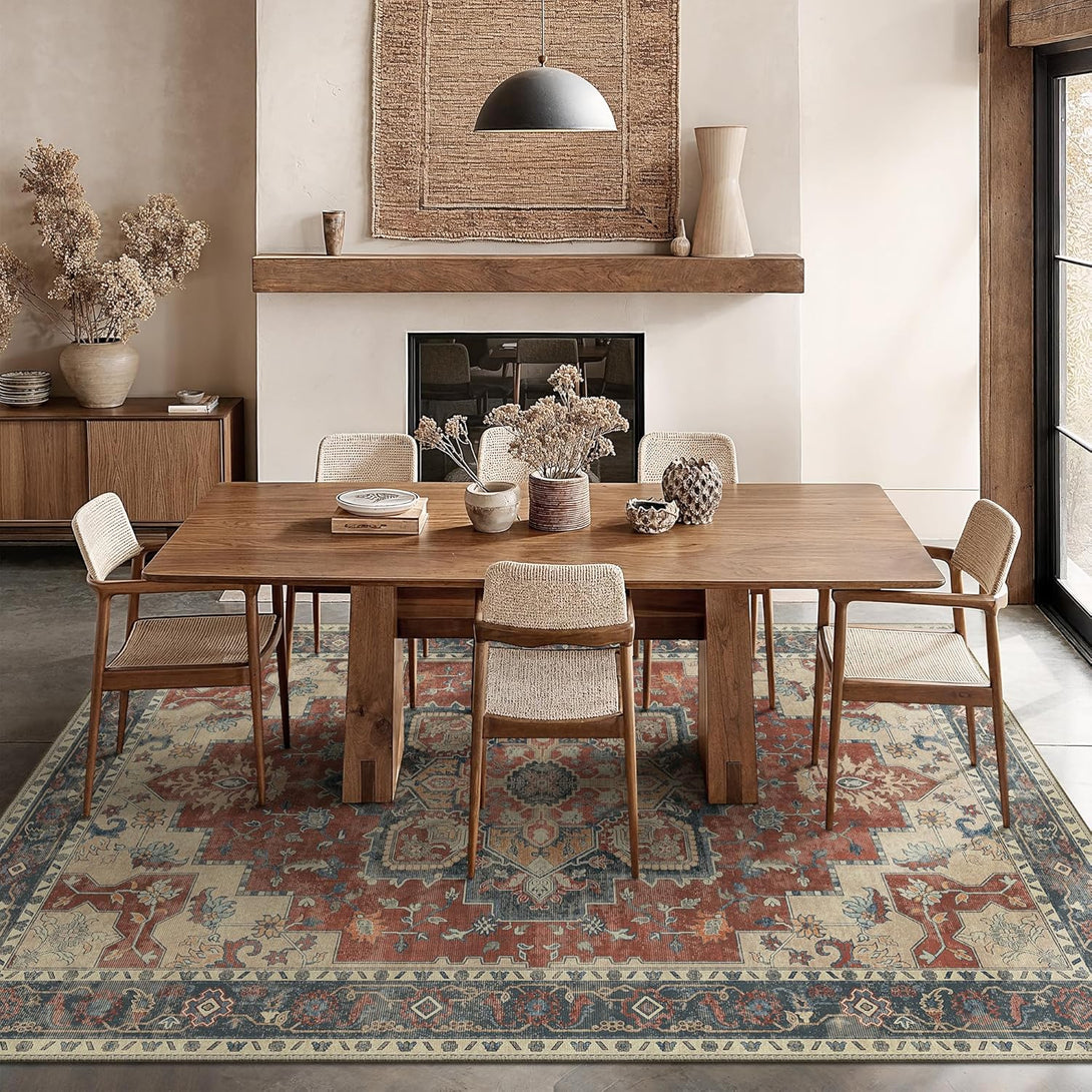 - Machine Washable: Our boho area rug is designed for convenience and fits seamlessly into any lifestyle. Machine wash with cold water on gentle cycle (not to add bleach), air dry or dry on air-only cycle without heat. For daily upkeep, use a vacuum cleaner or a quick wipe. Its VERY THIN design allows for easy removal of pet hair and other debris.