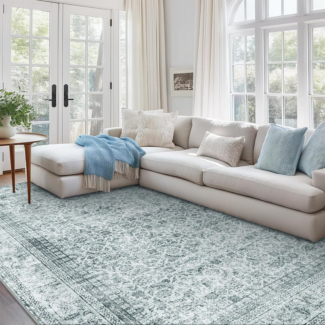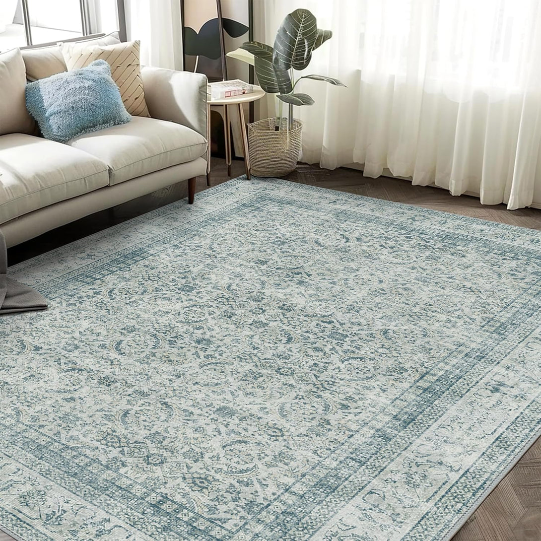 - Classic Printed Design: This living room rug features a vintage-inspired design that cleverly blends modern, and distressed styles. Its eye-catching design is sure to captivate and delight. Its gray floral pattern contributes a sophisticated grace to your home decor. Showcasing a detailed floral medallion accent patterns motif.It introduces a hint of contemporary energy and coziness to your living space, while ensuring comfort.