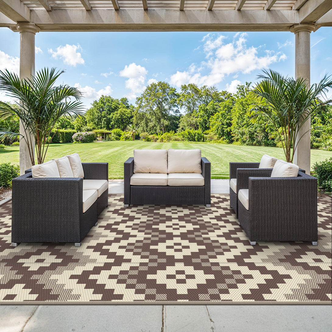 GENIMO Diamond Geometric Print Double Sided Waterproof Outdoor Rug