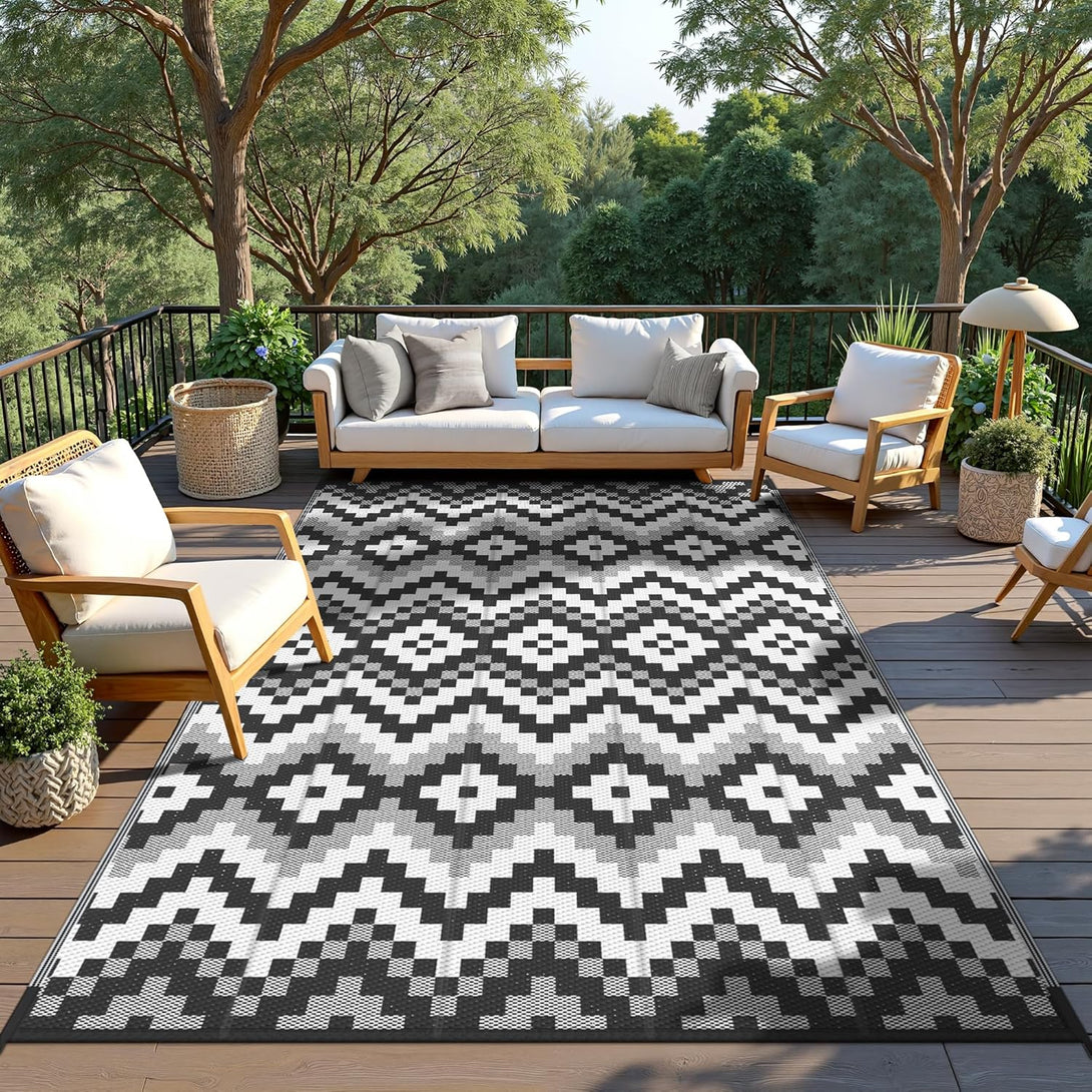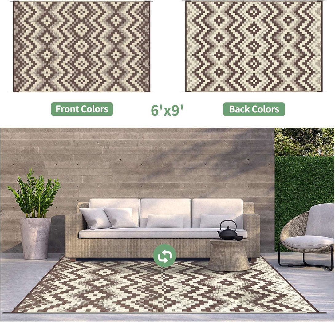 - Wide Use & Customer Service: Designed for patios, gardens, and patio furniture sets, GENIMO outdoor rug enhances RV trips, camping, balcony,picnic, porch,deck or patio set arrangements. Multiple sizes for your choice ( 5'x8', 6'x9', 8'x10', 9'x12', ).If you get any problem with our rugs, please contact us immediately, we will offer you a satisfactory solution