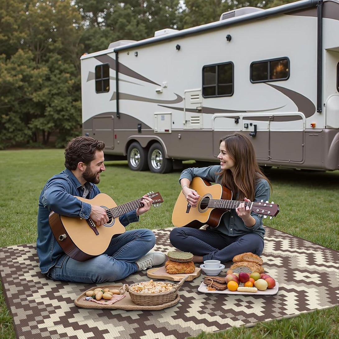 - UV & Fade Resistant: Professional UV coating can resist high temperature, fading and other sun damage, ideal for placements near sun-exposed patio tables or under shaded patio umbrellas and suitable for long-lasting use even in stormy/windy/snowy weather. We suggest that you don't keep rv rugs in direct sunlight for a long time, using it in the shade. Note: colors may be different from image because of the environment or lights