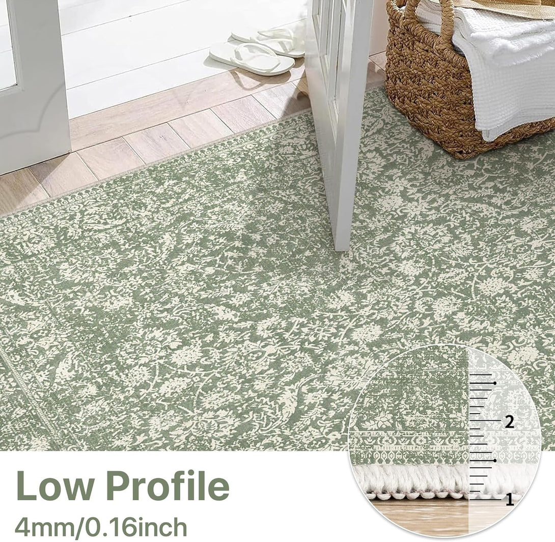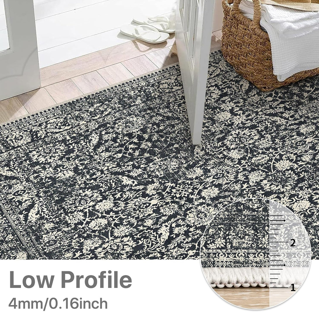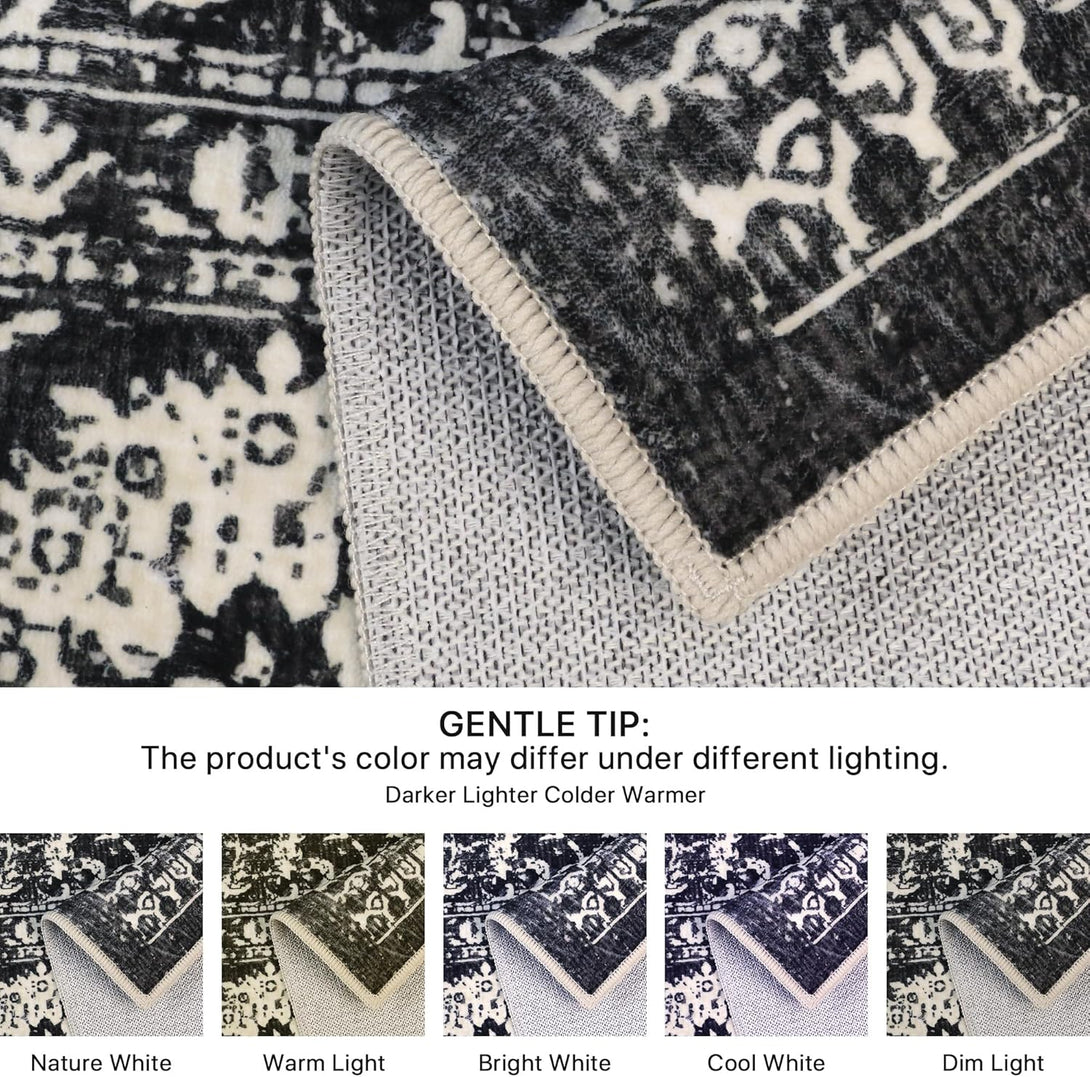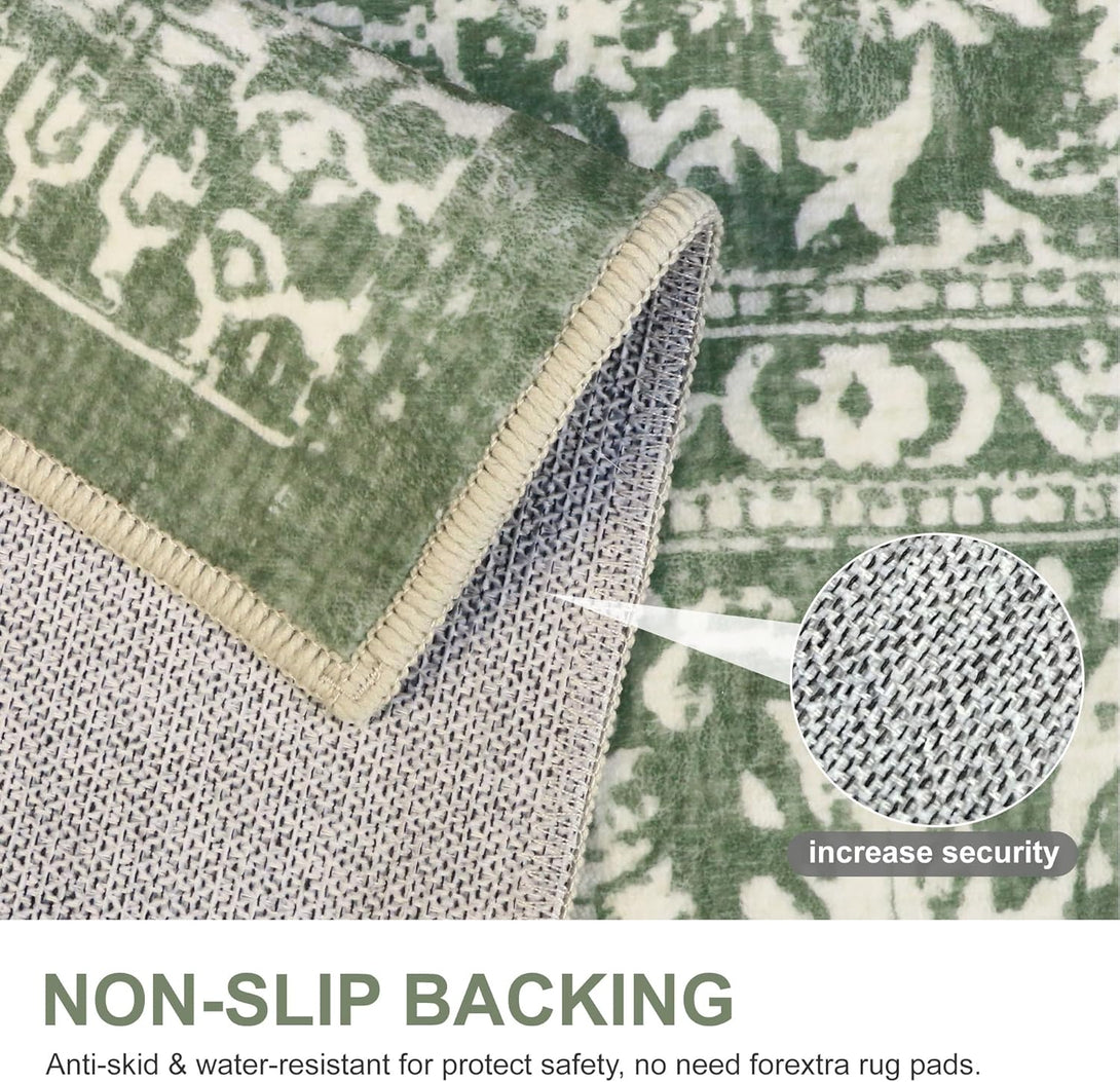 - 【Safety Non-Slip Rug】:The ultra-thin vintage rug can be easily placed under dining tables and furniture without becoming a snag or trip hazard.The back features a non-slip rubberized backing that provides excellent friction and helps keep the area rugs in place,so it won't move or slide away,even with heavy foot traffic.