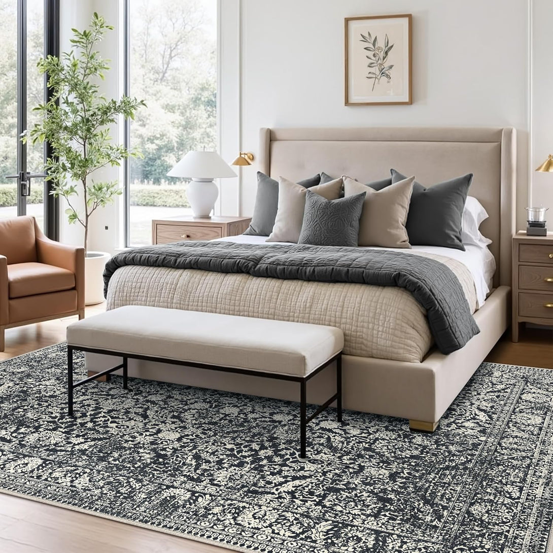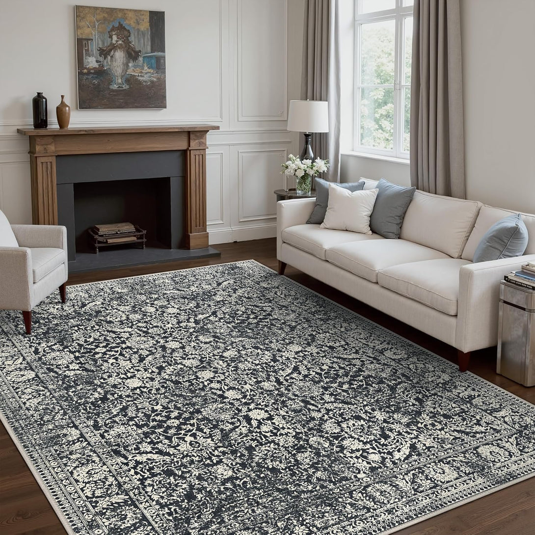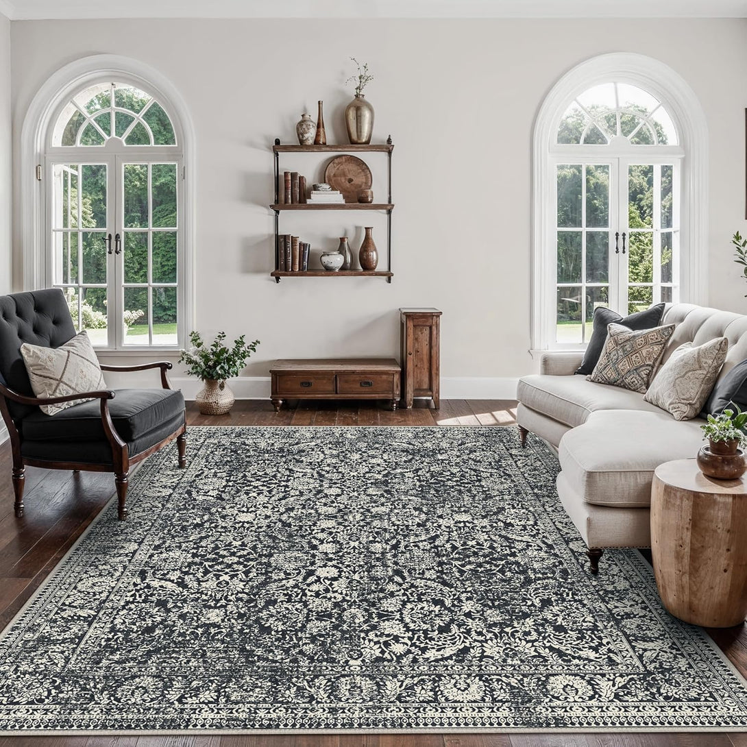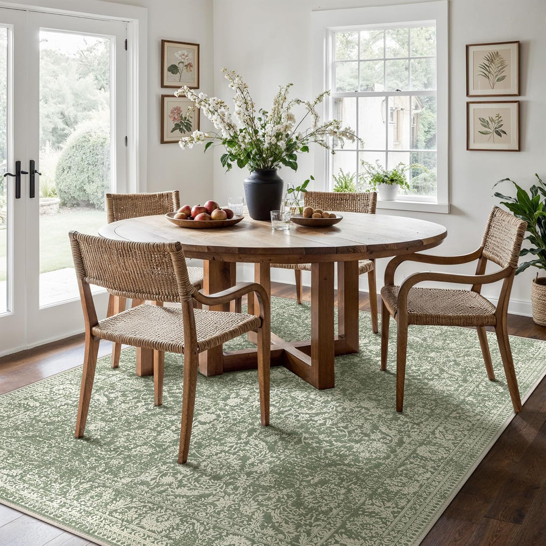 - 【Safety Non-Slip Rug】:The ultra-thin vintage rug can be easily placed under dining tables and furniture without becoming a snag or trip hazard.The back features a non-slip rubberized backing that provides excellent friction and helps keep the area rugs in place,so it won't move or slide away,even with heavy foot traffic.