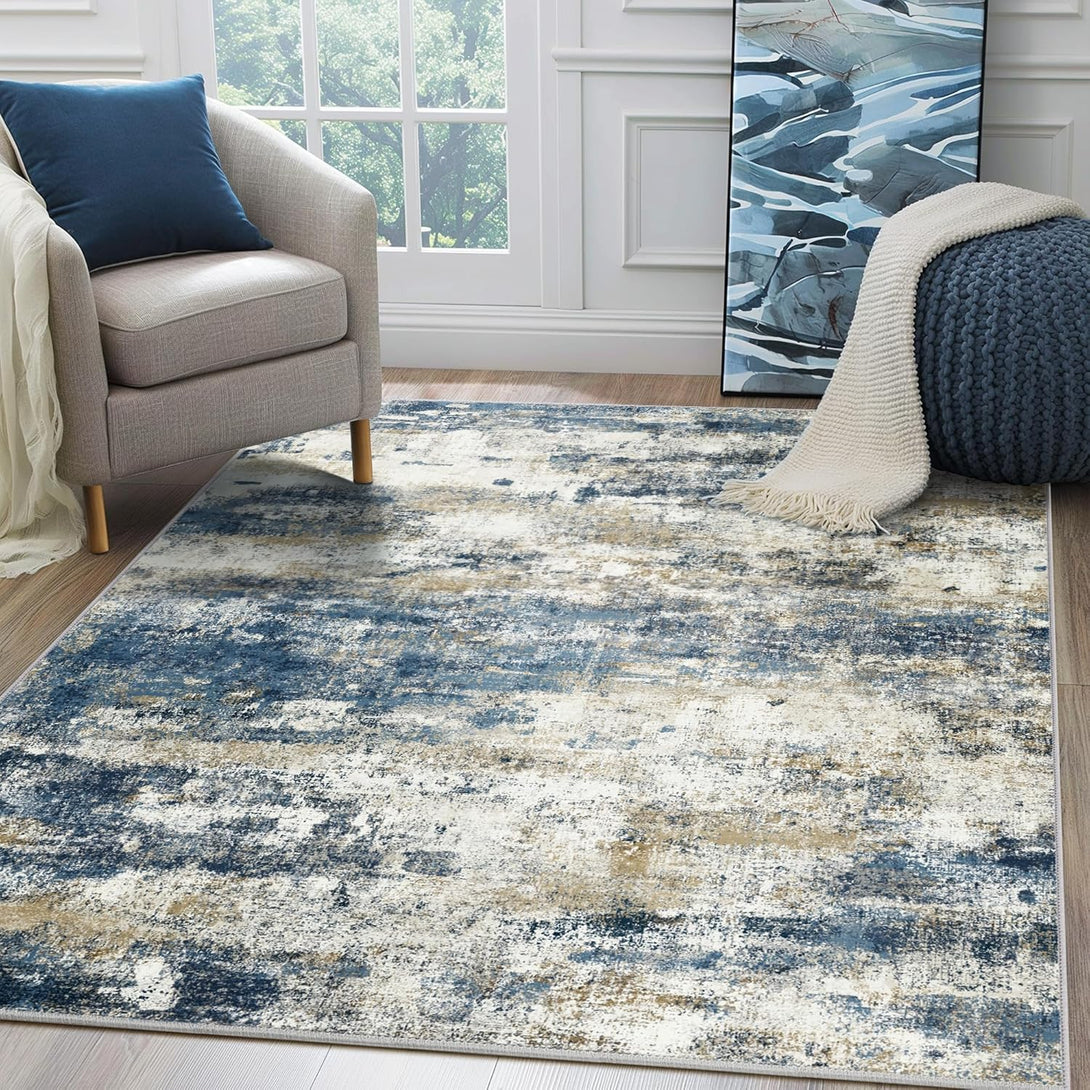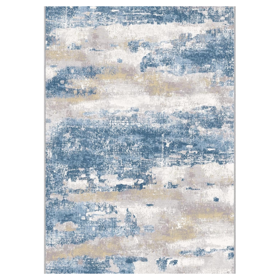 - Contemporary Printed Design: Enhance your room with our machine washable area rug for Living Room featuring a blue cream abstract pattern. The modern design exudes artistic flair, while the color complements various interiors. Expertly crafted for lasting appeal, this chic area rug for bedroom effortlessly elevates living rooms, dining room, or offices with a touch of sophistication