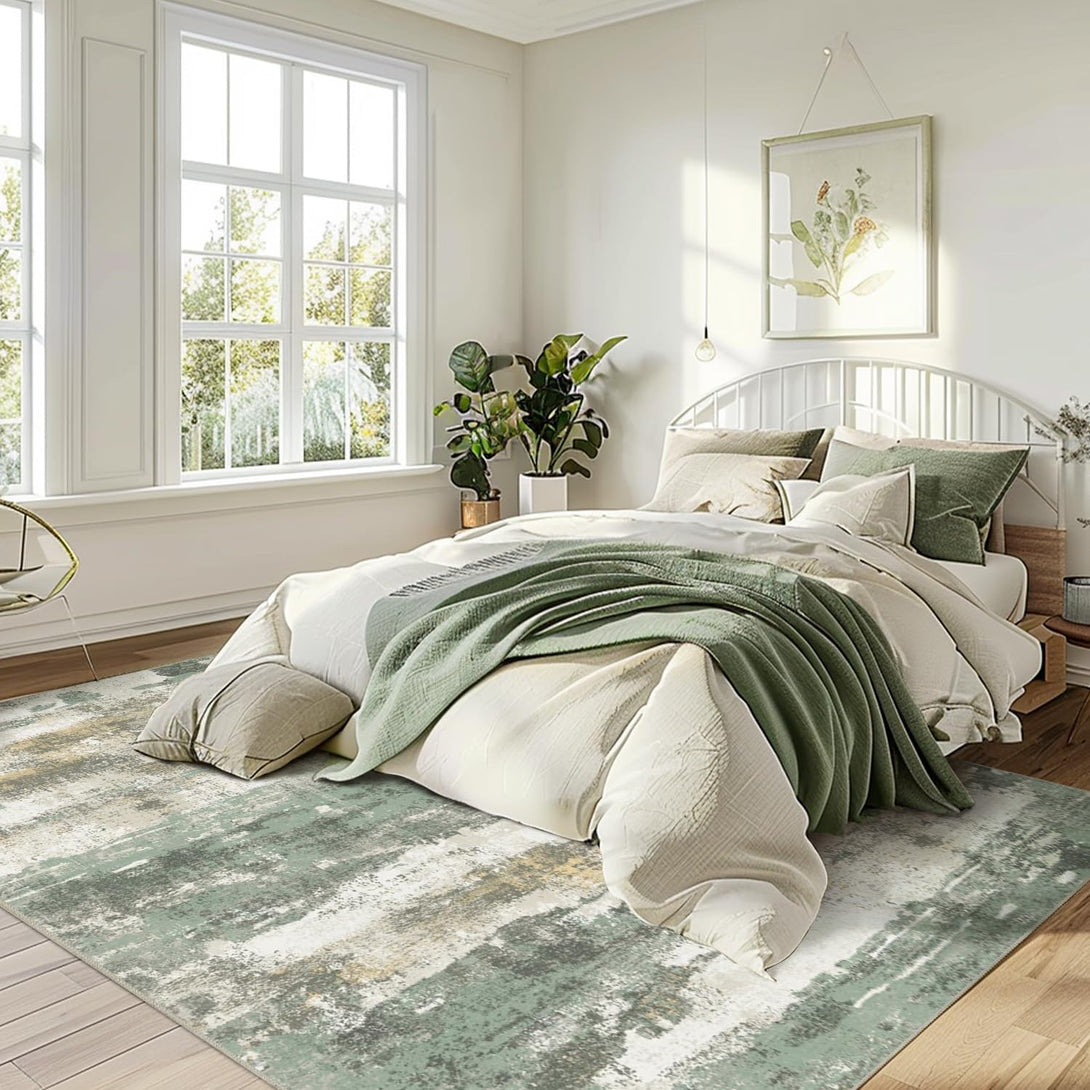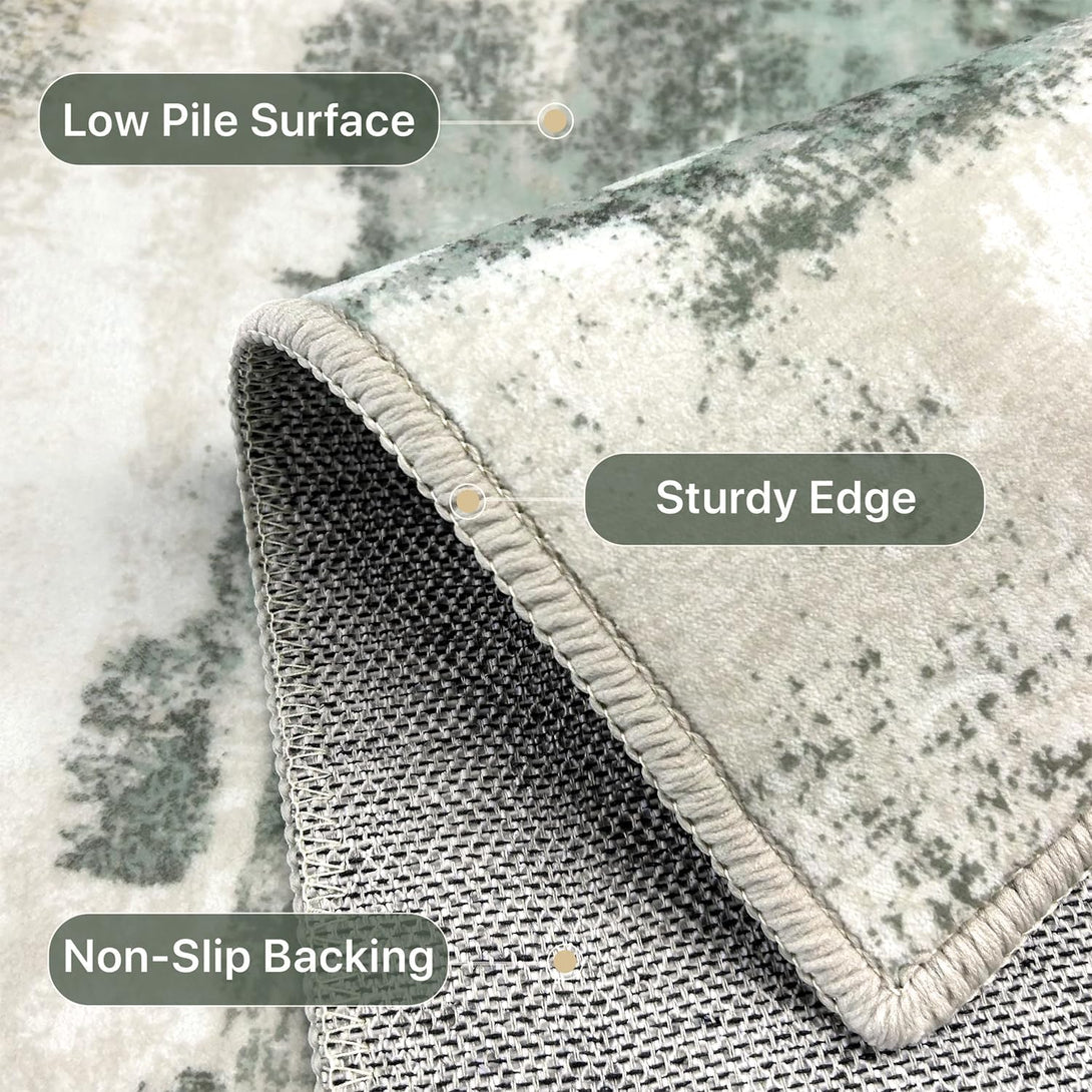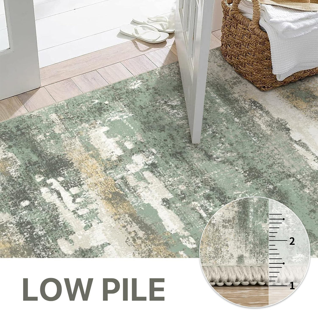 - Tender Touch: Experience the ultimate in luxury with our low-pile polyester modern 5x7 area rug, providing a cozy cushioned surface that eliminates the need for extra padding. This soft light green and cream abstract rug insulates your floors, creating a warm and inviting atmosphere in your living room, bedroom, dining room