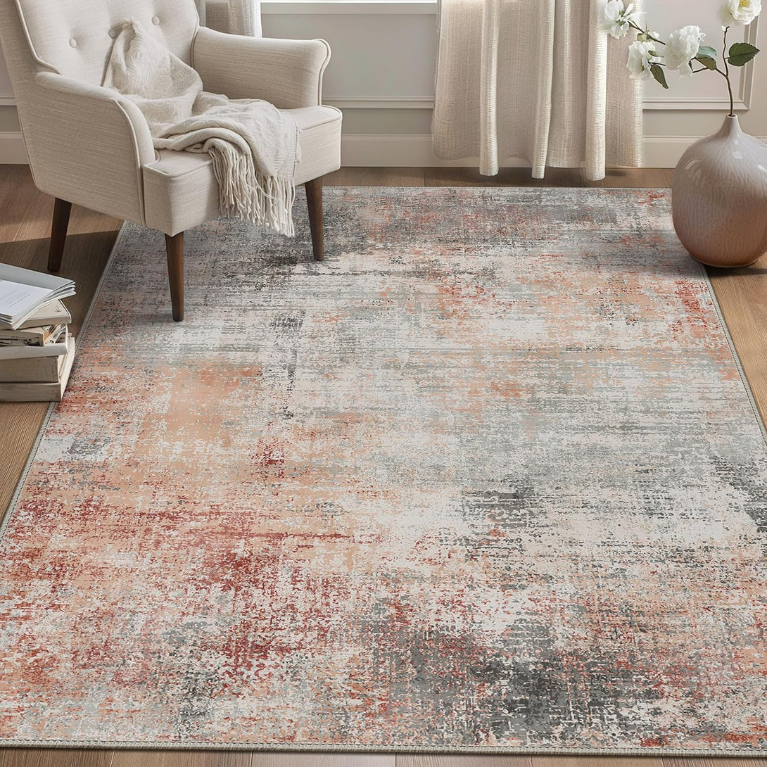 GENIMO Modern Abstract Textured Machine Washable Area Rug Red