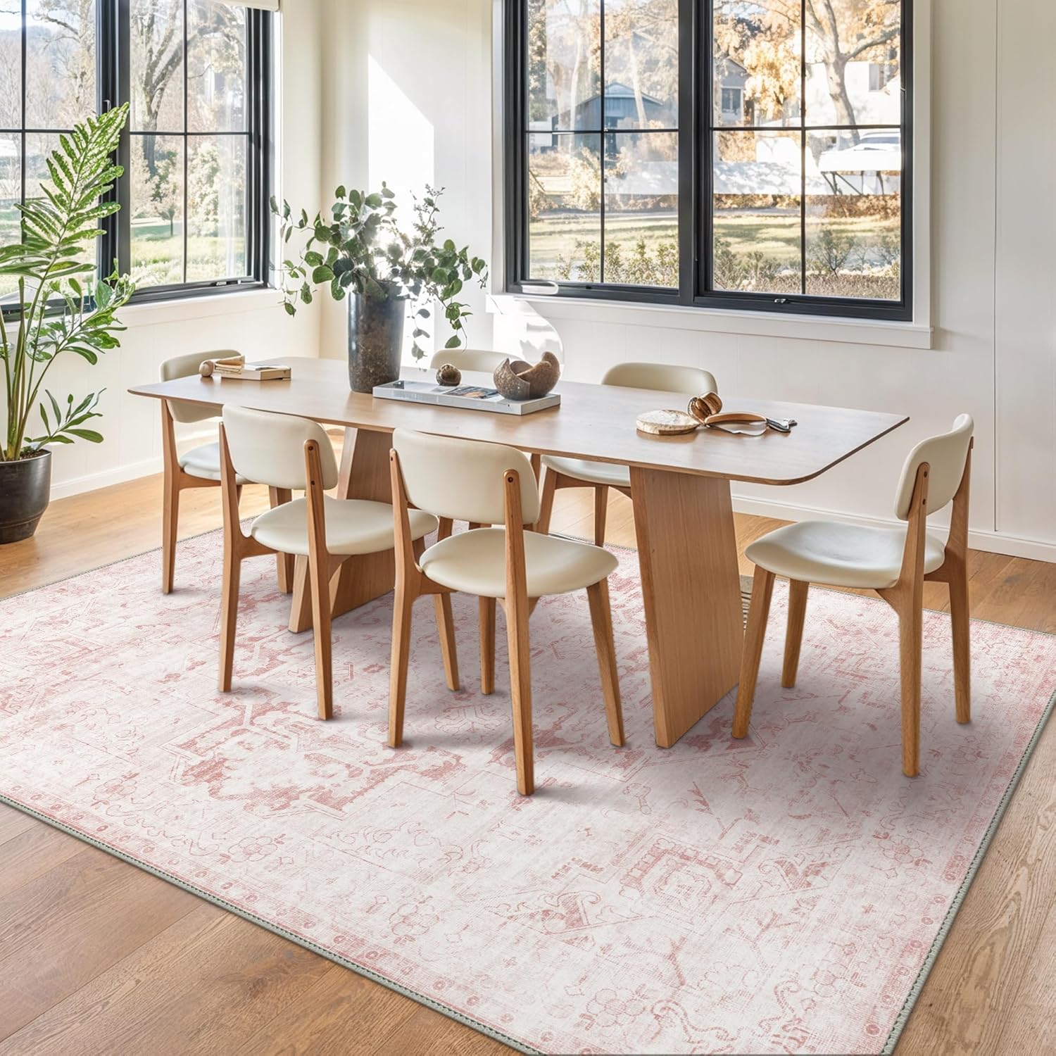 Built-in non-slip backing keeps the rug stable and safe, whether kids are running or pets are playing, even when chairs slide across it.