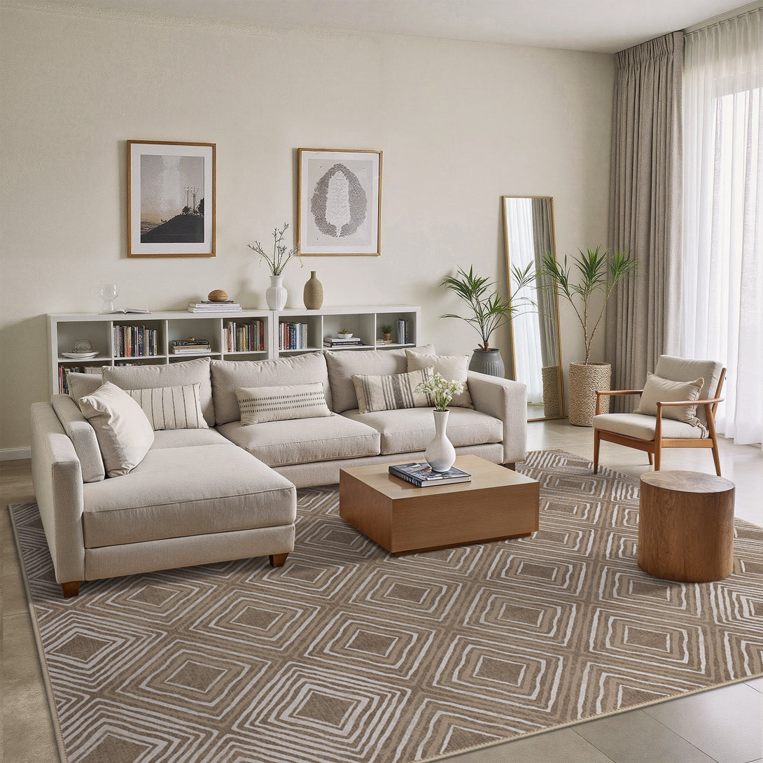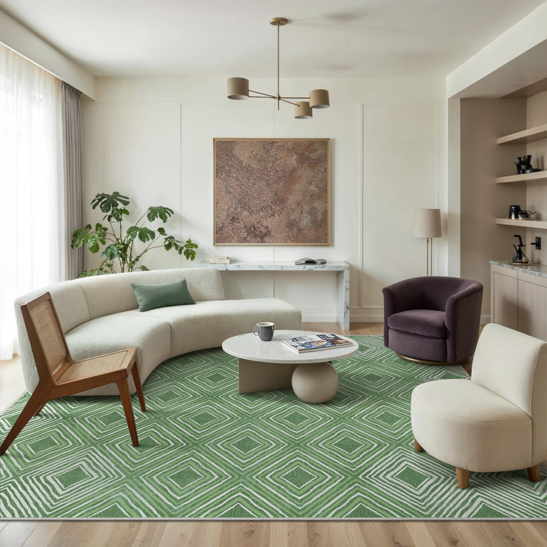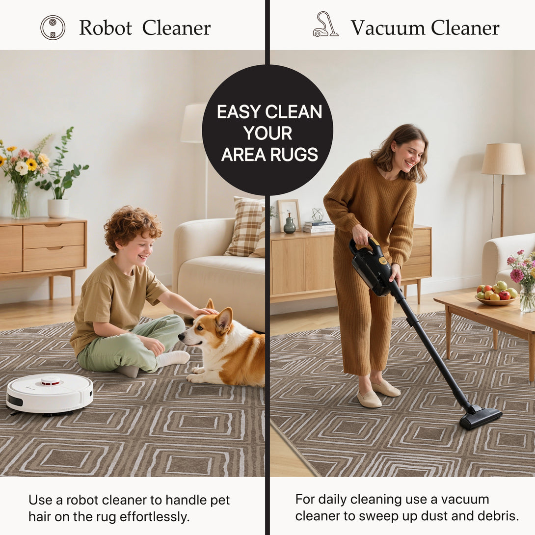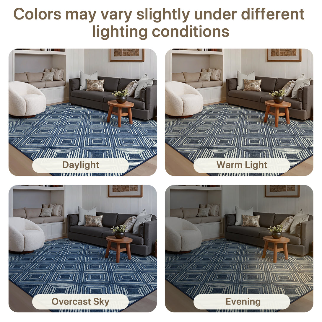 - 【Well-Crafted & High-Quality】GENIMO modern geometric rug adds a sleek, bold touch to any space with its minimalist, grid design. It’s made from skin-friendly, sustainable microfiber with precision weaving and stitching for lasting comfort. While natural light shows the most accurate color, environmental factors can cause slight ink variations during printing, leading to color differences.