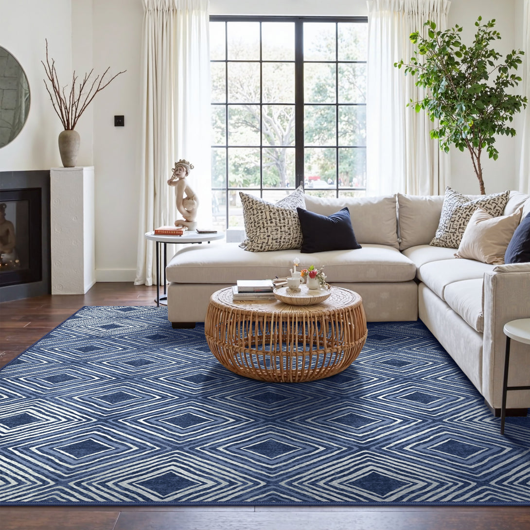 Most genimorug rugs are machine washable (large rugs fit best in 5.5 cu ft or larger machines). Pre-clean dust and stains, wash in cold water on a gentle cycle with mild detergent, then air-dry or tumble-dry on low heat.