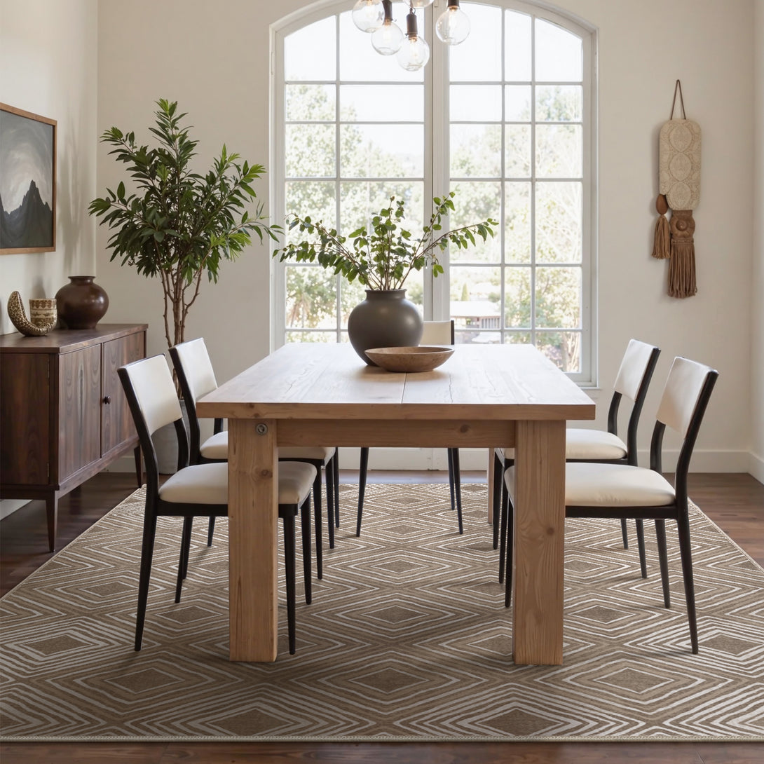 Built-in non-slip backing keeps the rug stable and safe, whether kids are running or pets are playing, even when chairs slide across it.