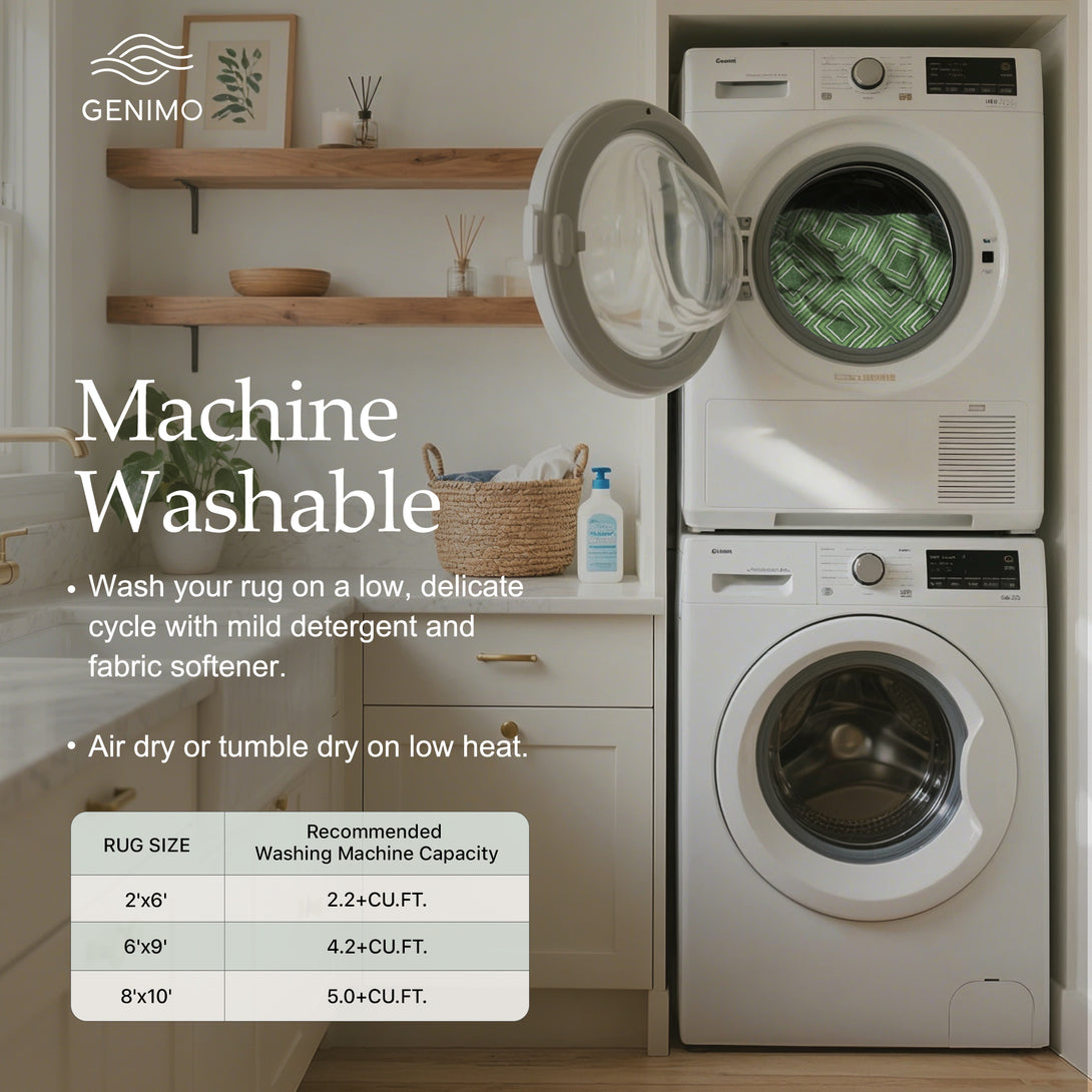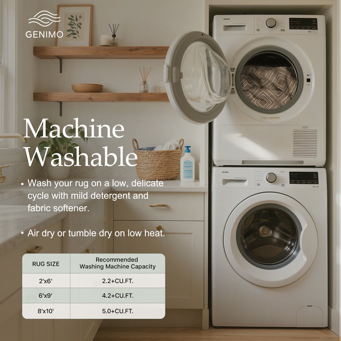 All GENIMO rugs are fully machine washable, making everyday care effortless.