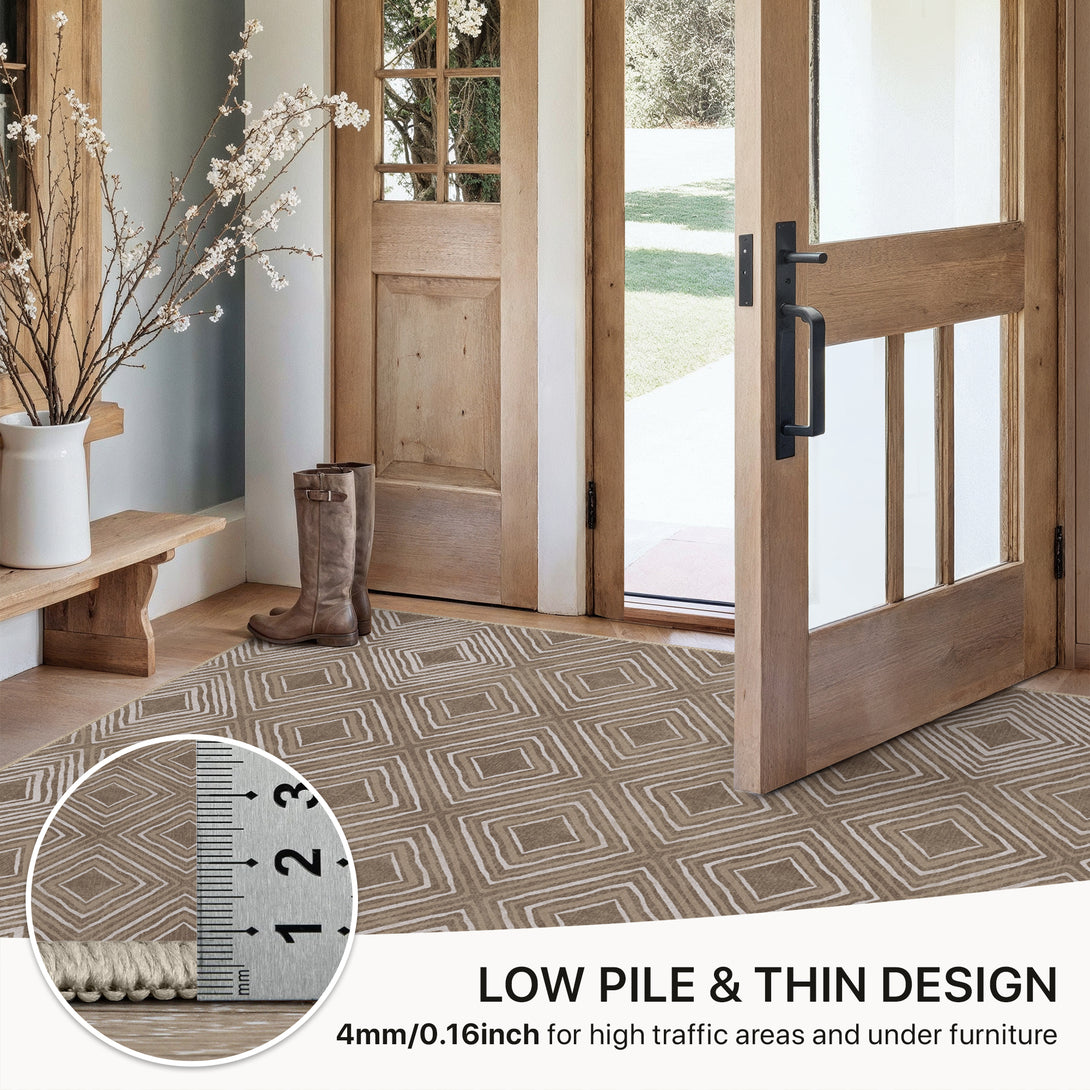 - 【Lightweight & Versatile】This brown rug features a thin, foldable design for effortless storage and portability. With a 4mm low pile, its ultra-thin, slim structure fits seamlessly under doors and helps reduce tripping hazards. Perfect for high-traffic areas like the bedroom, living room, kids' room, nursery, playroom and office.