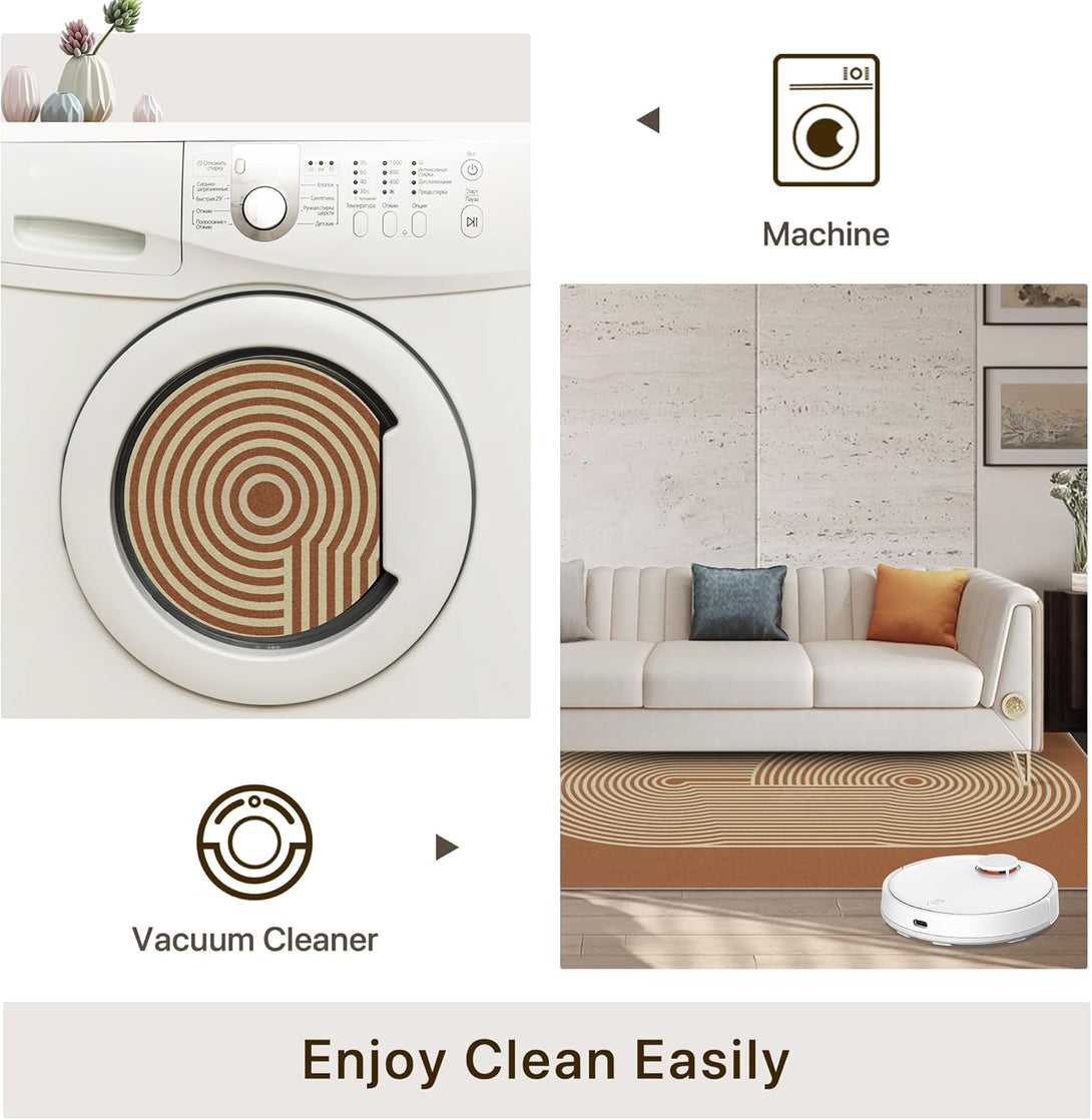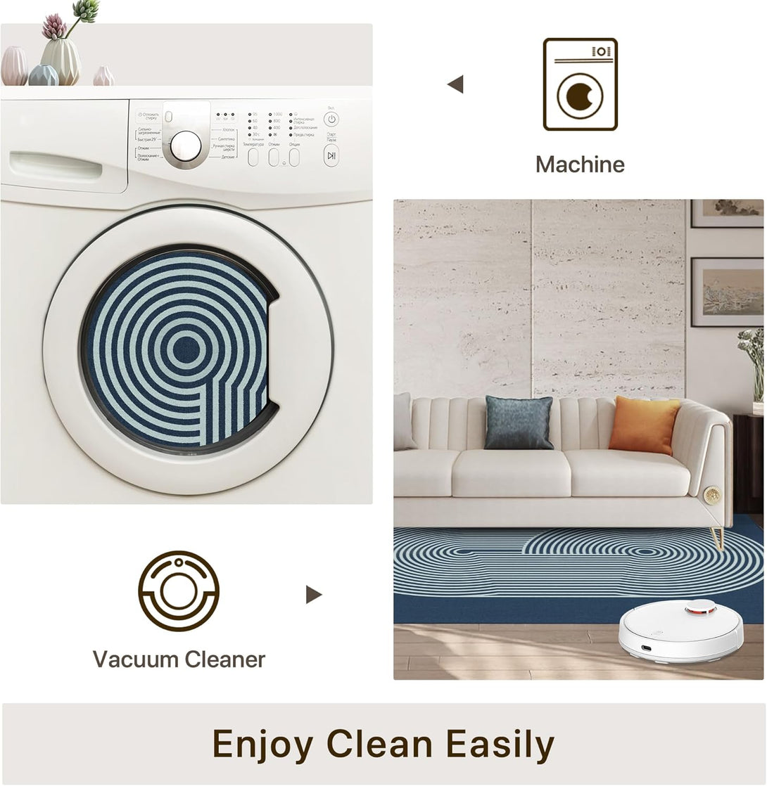 - 【Machine Washable & Effortless Care】: Our rug is designed for easy cleaning and can withstand the daily wear and tear from kids and pets. With stain resistant and non slip properties, washable rug stays fresh and looking great no matter how you clean it whether by machine washing, using a robotic cleaner, or even hosing it down. Remember to use cold water and avoid bleach to keep its colors bright and vibrant. Enjoy the simplicity of maintaining your rug with minimal effort.