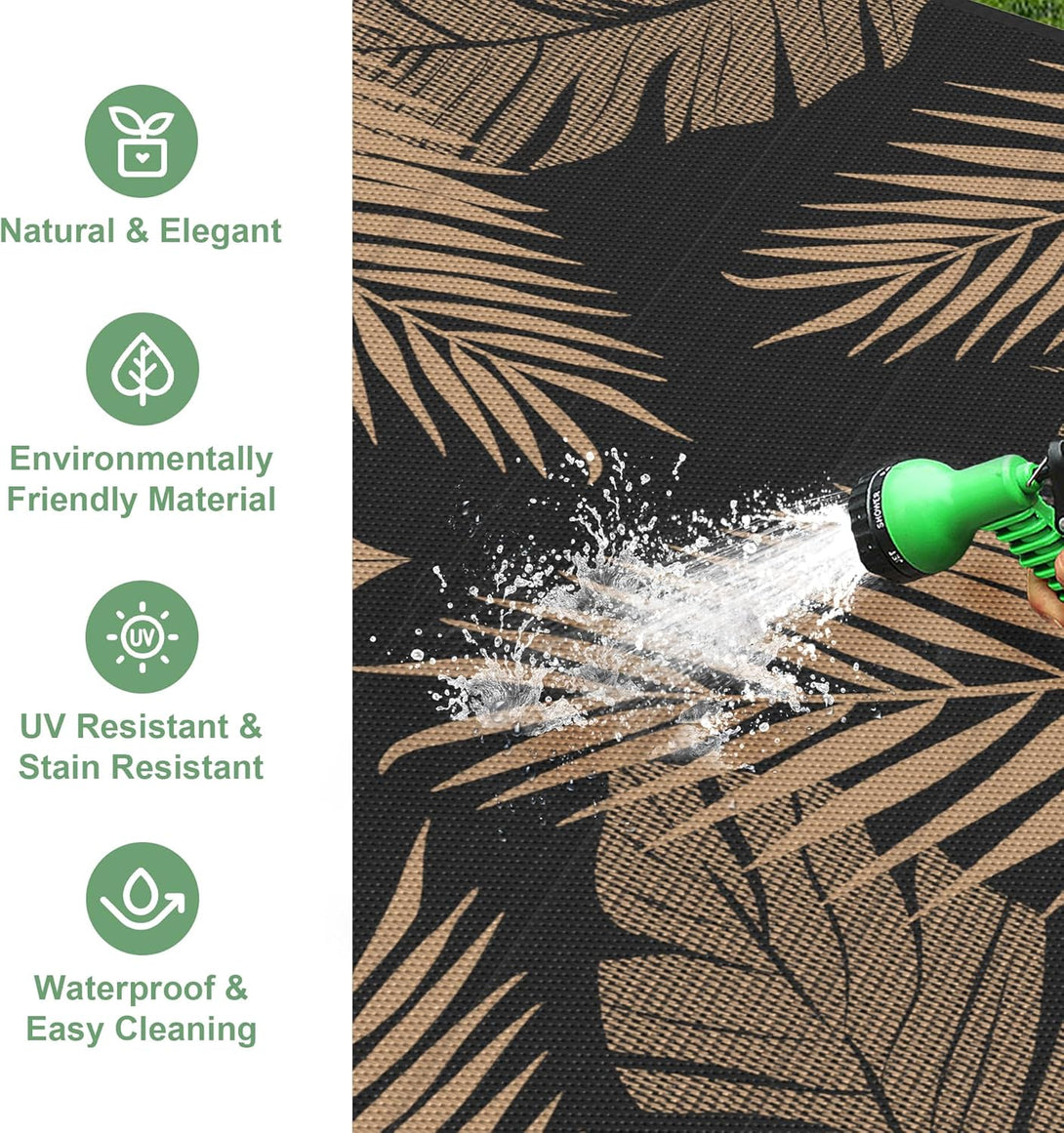 - Palm Leaf Design & Double-Sided Pattern: GENIMO reversible outdoor rug is designed with a double-sided pattern, completing the unique layout of multiple palm leaves. The 2 shades of black and grey achieve the ultimate fusion. Either side can blend perfectly with nature and look very full and comfortable