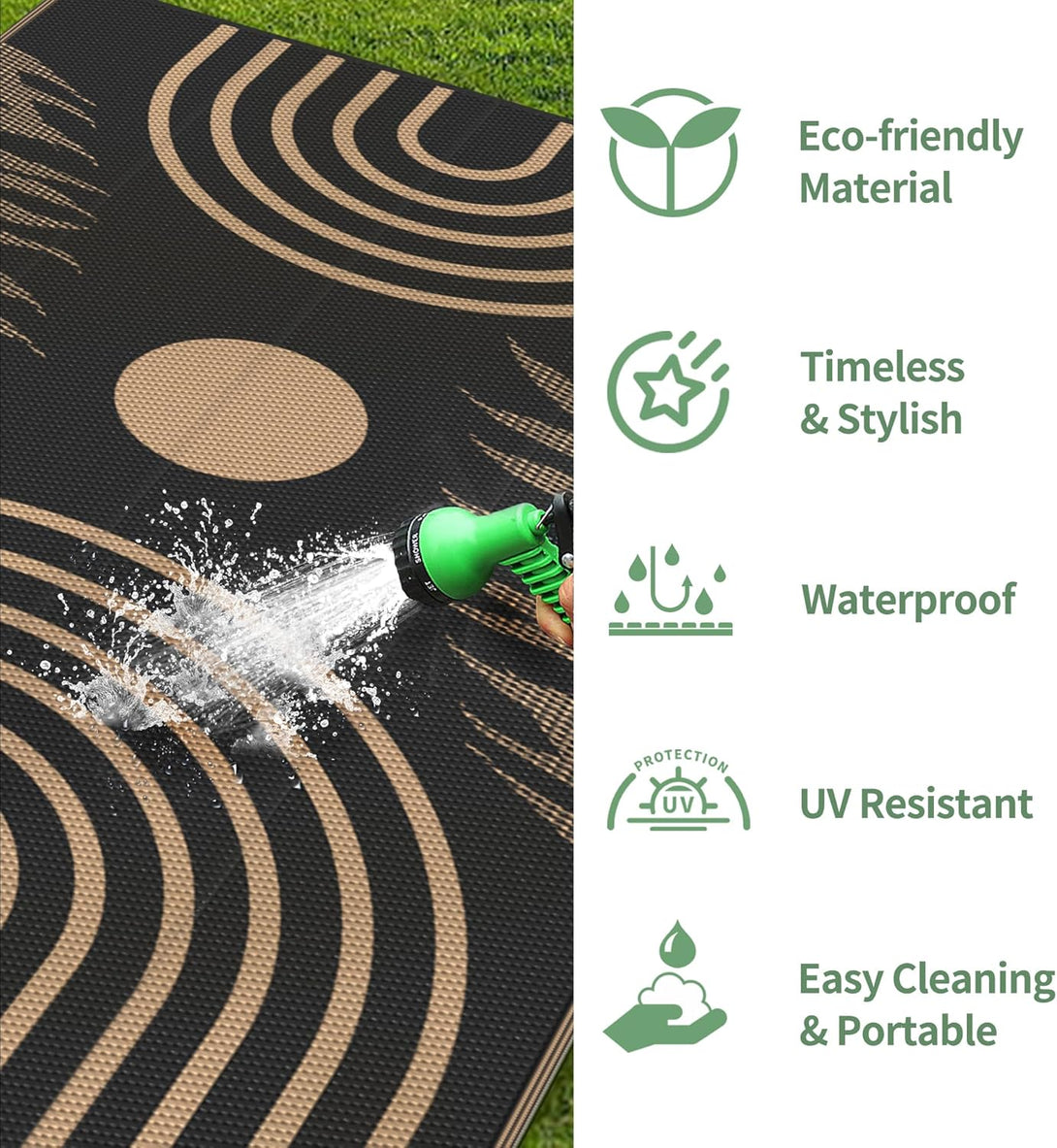 - Wide Use: This outside waterproof mat can be widely used under furniture sets on outdoor patios, for outdoor camping, rv, porch, balcony, pool deck, and picnic. Meanwhile, we offer a variety of sizes for you to choose (4'x6'、5'x8'、6'x9'、8'x10'、9'x12')