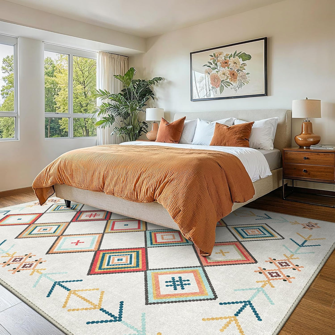 Most genimorug rugs are machine washable (large rugs fit best in 5.5 cu ft or larger machines). Pre-clean dust and stains, wash in cold water on a gentle cycle with mild detergent, then air-dry or tumble-dry on low heat.