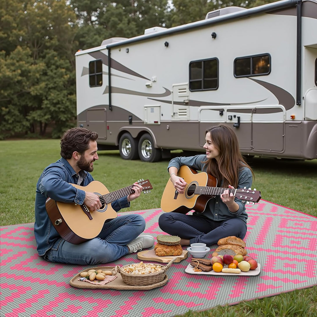 - UV & Fade Resistant: Professional UV coating can resist high temperature, fading and other sun damage, ideal for placements near sun-exposed patio tables or under shaded patio umbrellas and suitable for long-lasting use even in stormy/windy/snowy weather. We suggest that you don't keep rv rugs in direct sunlight for a long time, using it in the shade. Note: colors may be different from image because of the environment or lights