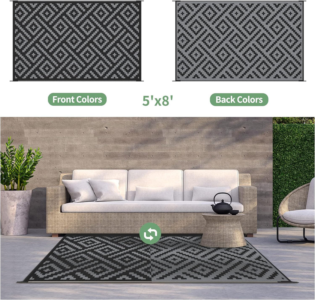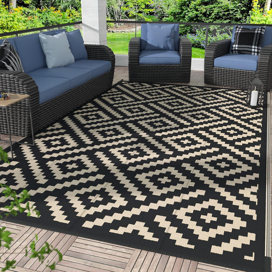 GENIMO Rhombic Printed Double Sided Waterproof Outdoor Rug Black