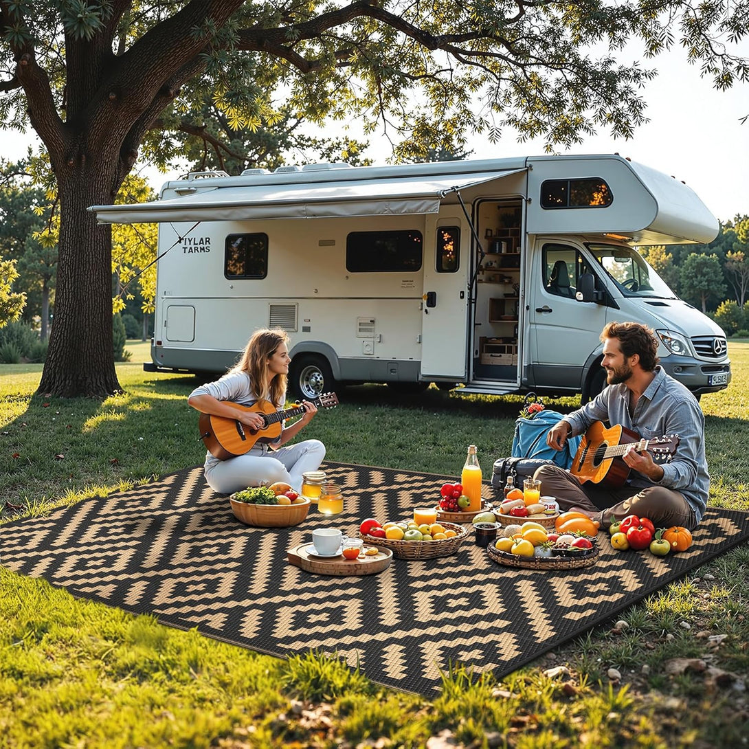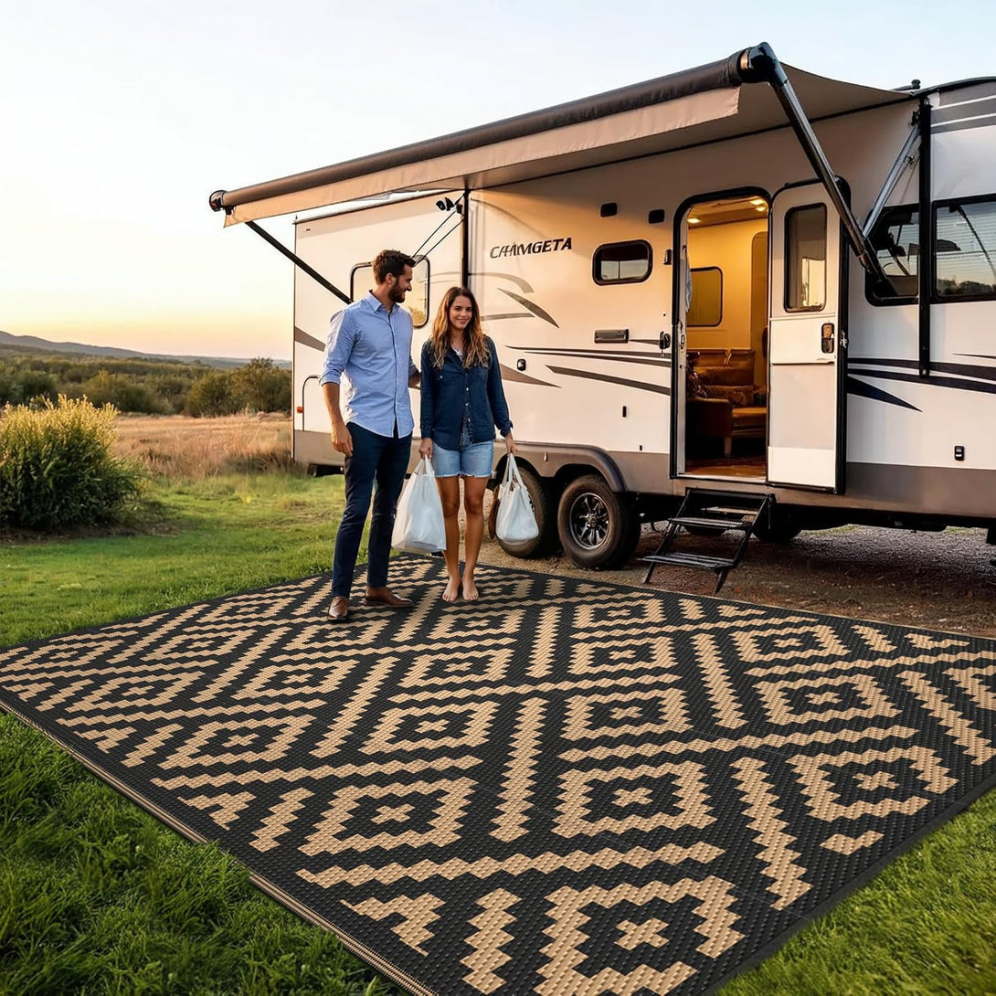 - 【UV & FADE RESISTANT】Professional UV coating can resist high temperature, fading and other sun damage, suitable for long-lasting use even in stormy/windy/snowy weather. We suggest that you don't keep rv rugs in direct sunlight for a long time, using it in the shade. Note: colors may be different from image because of the environment or lights.