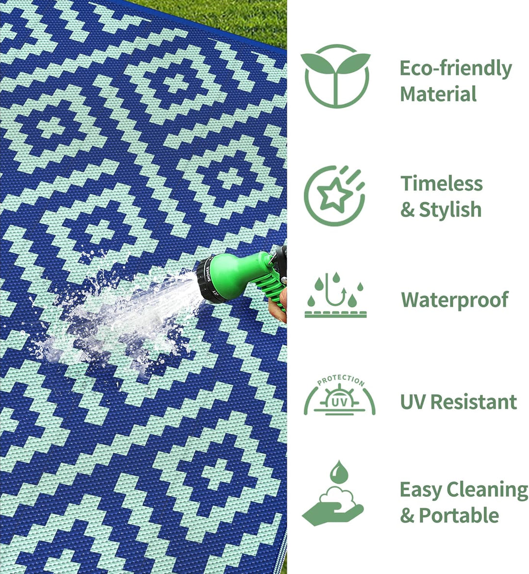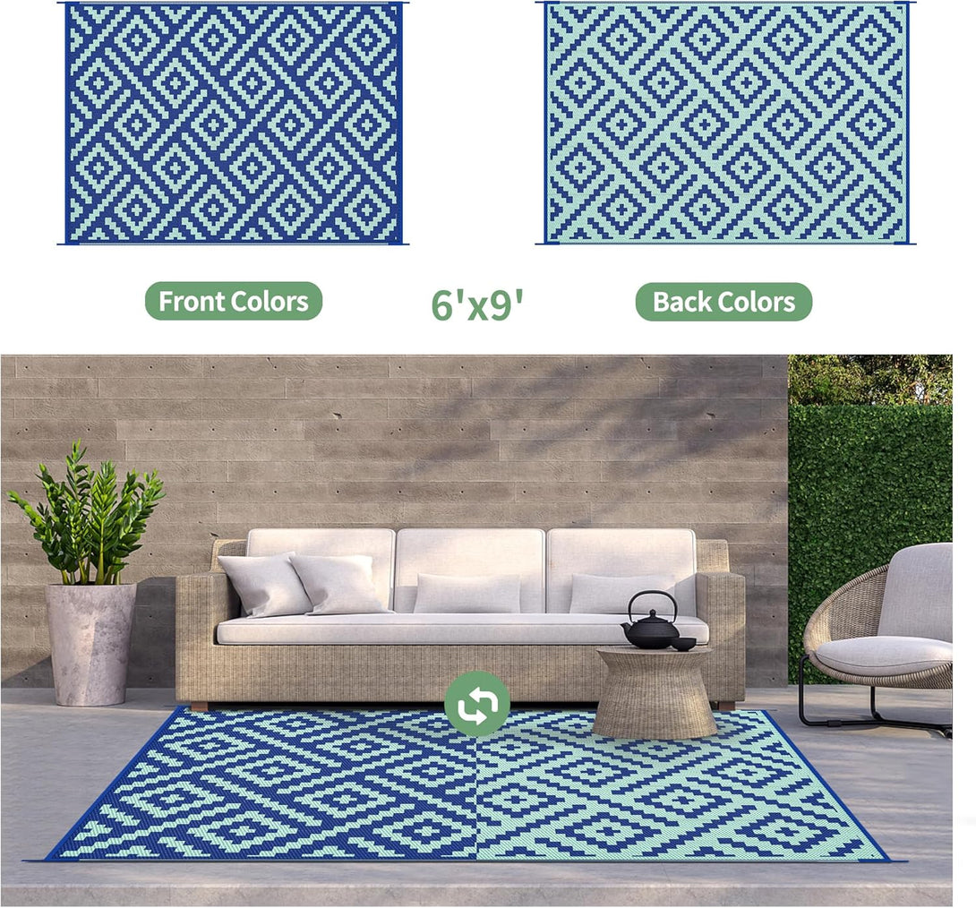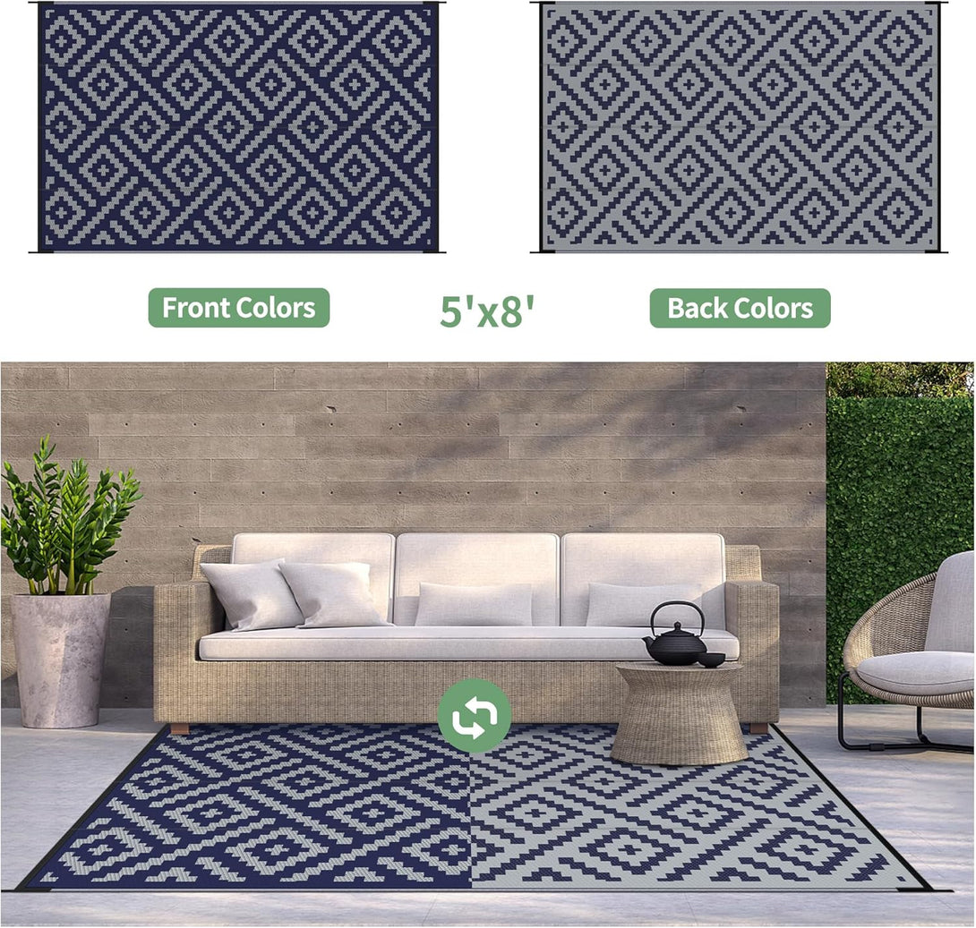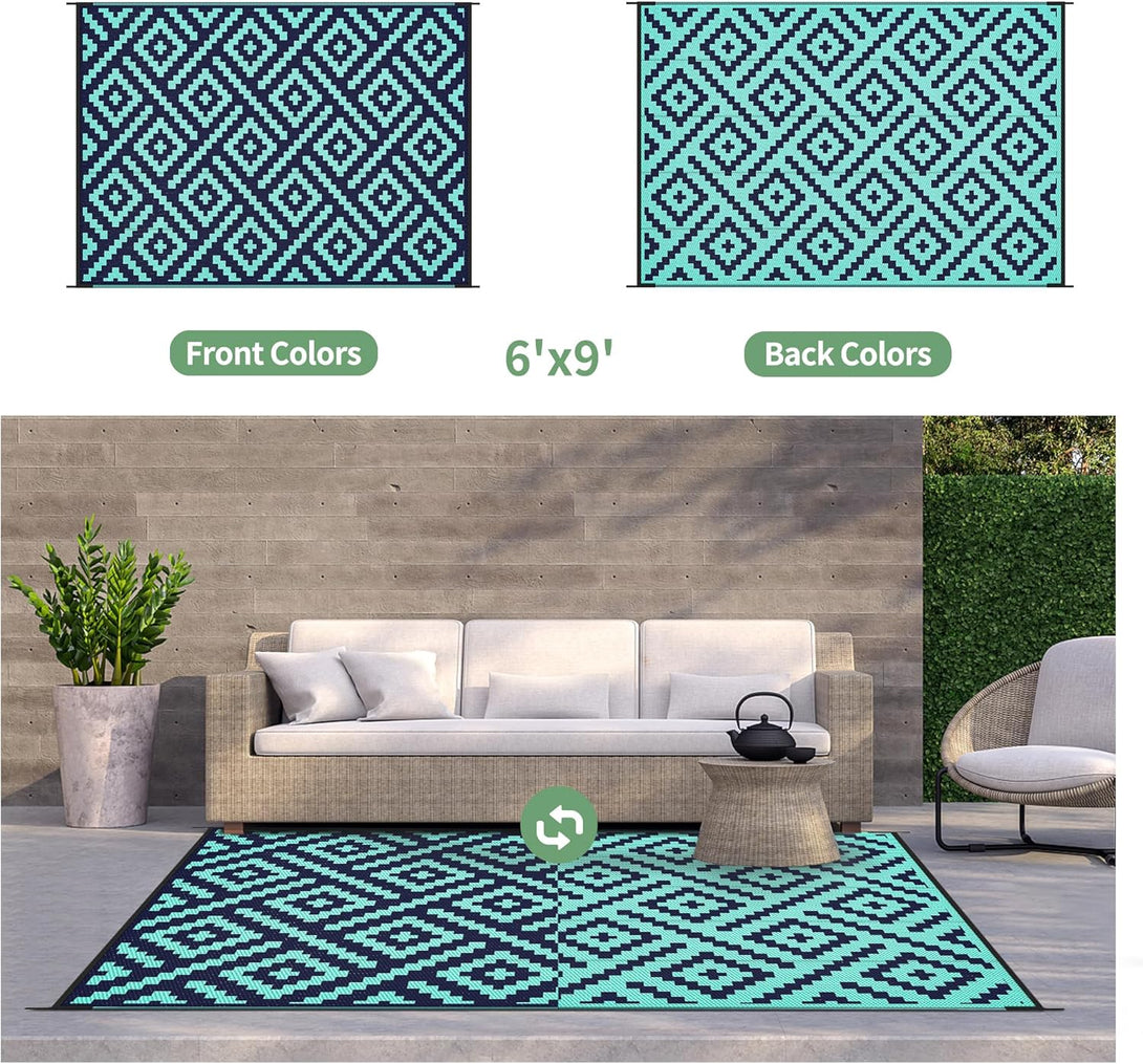 - All-nature & Eco-friendly: The indoor outdoor rug is made of environmentally friendly 100% virgin polypropylene. Edge heat treatment process to make the outdoor area rug edge firm. Tightly woven plastic technology is perfect for bare feet around your patio set or protecting delicate deck surfaces. The plastic rug fabric can withstand repeated wear and tear, you don't need to spend time maintaining it, which saves you a lot of time