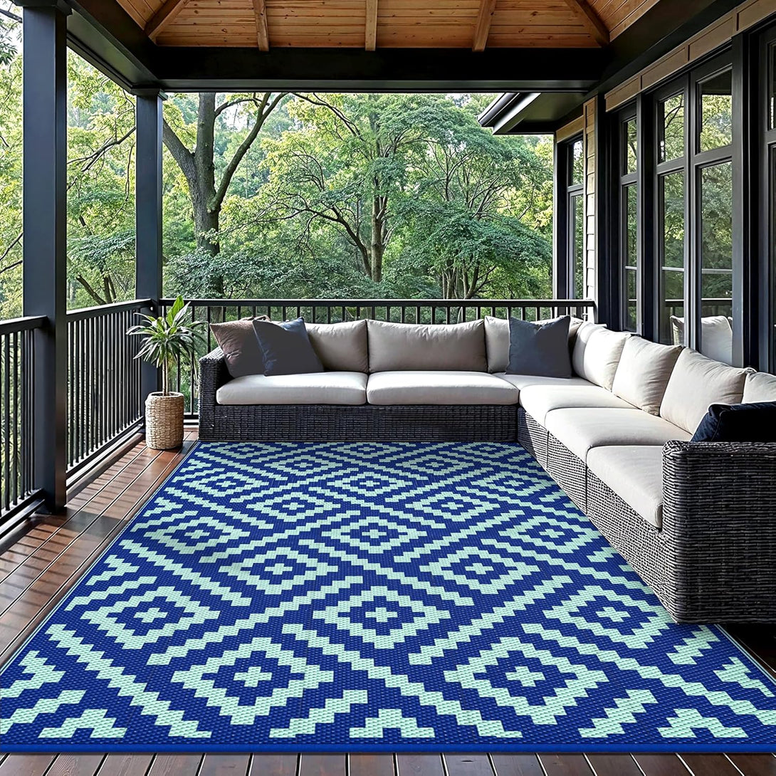 GENIMO Rhombic Printed Double Sided Waterproof Outdoor Rug Blue