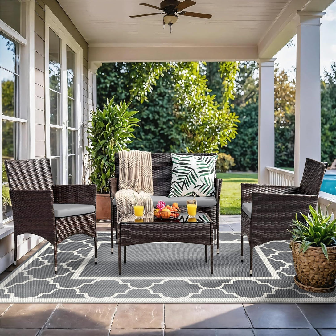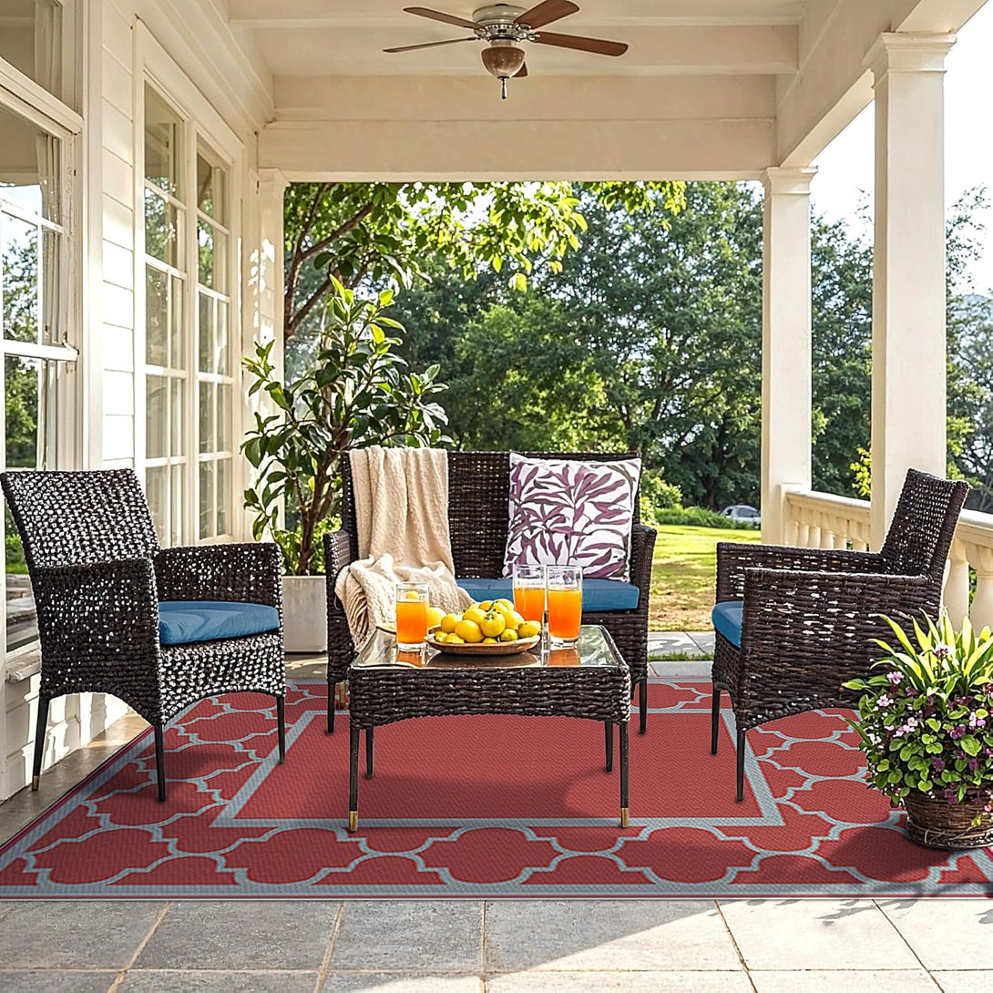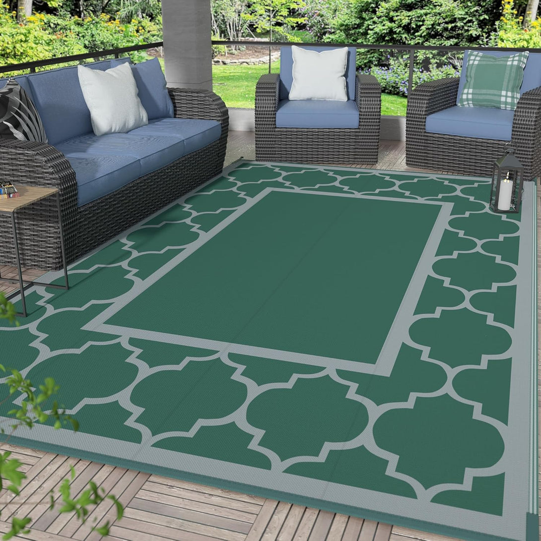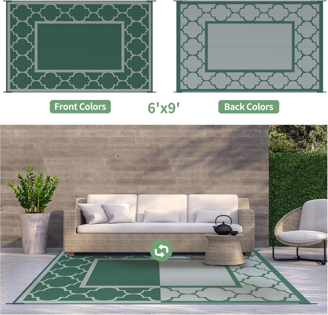 - Versatile Settings: Upgraded polypropylene ensures breathability and fast drying in this outdoor rug waterproof design. Perfect for the patio, deck, backyard, garden, porch, beach, Rv, picnic, or camping. Elevate your outdoor experience with GENIMO